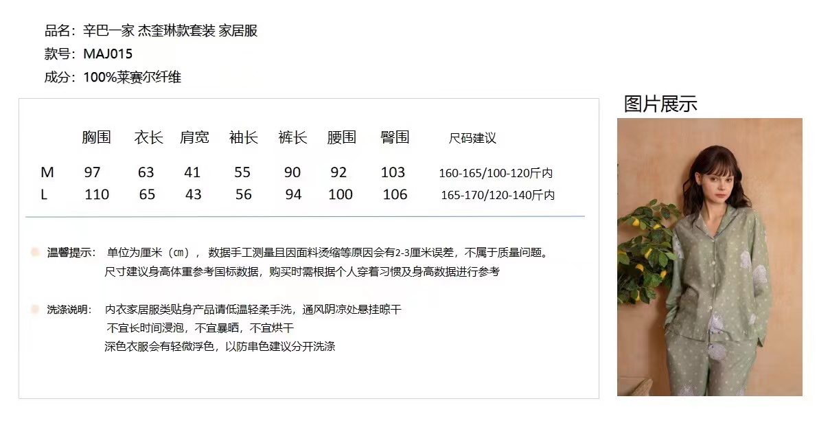 【预售】蔓秋2024新品天丝家居服 M/L 100%莱赛尔纤维 3-5天发货