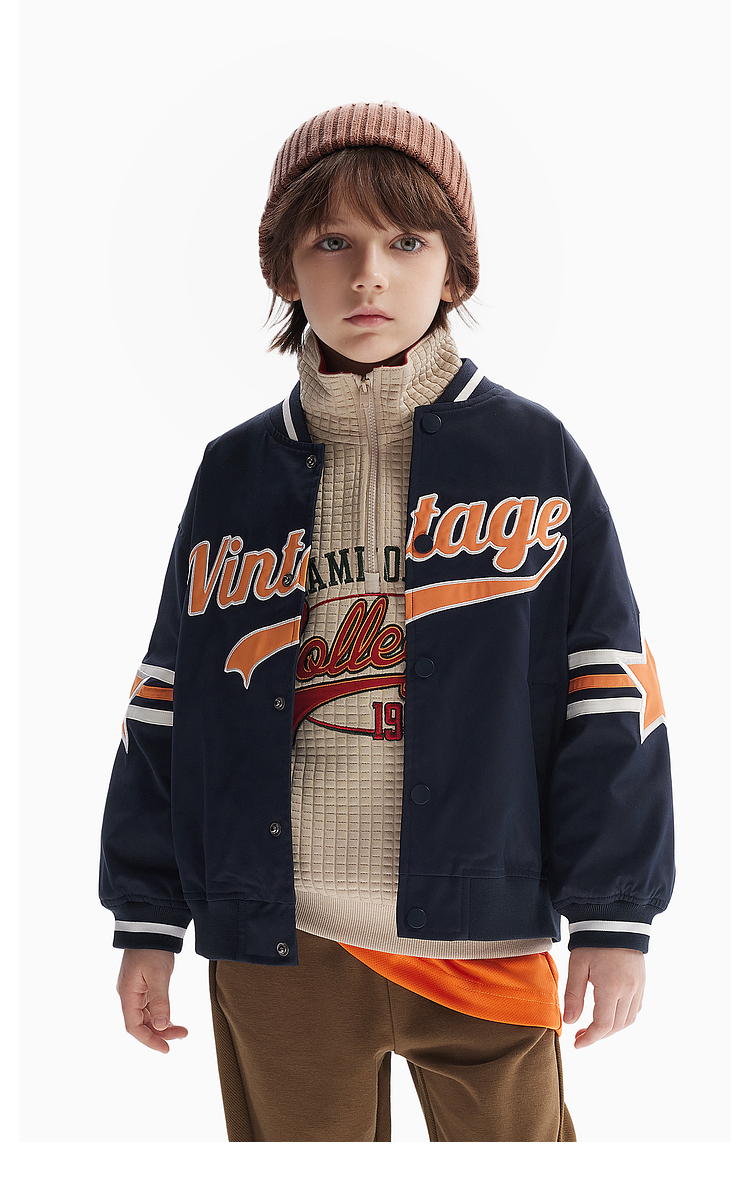 【秒】【MQD】童装男童棒球服学院外套春秋装款儿童撞色贴布绣棒球外套