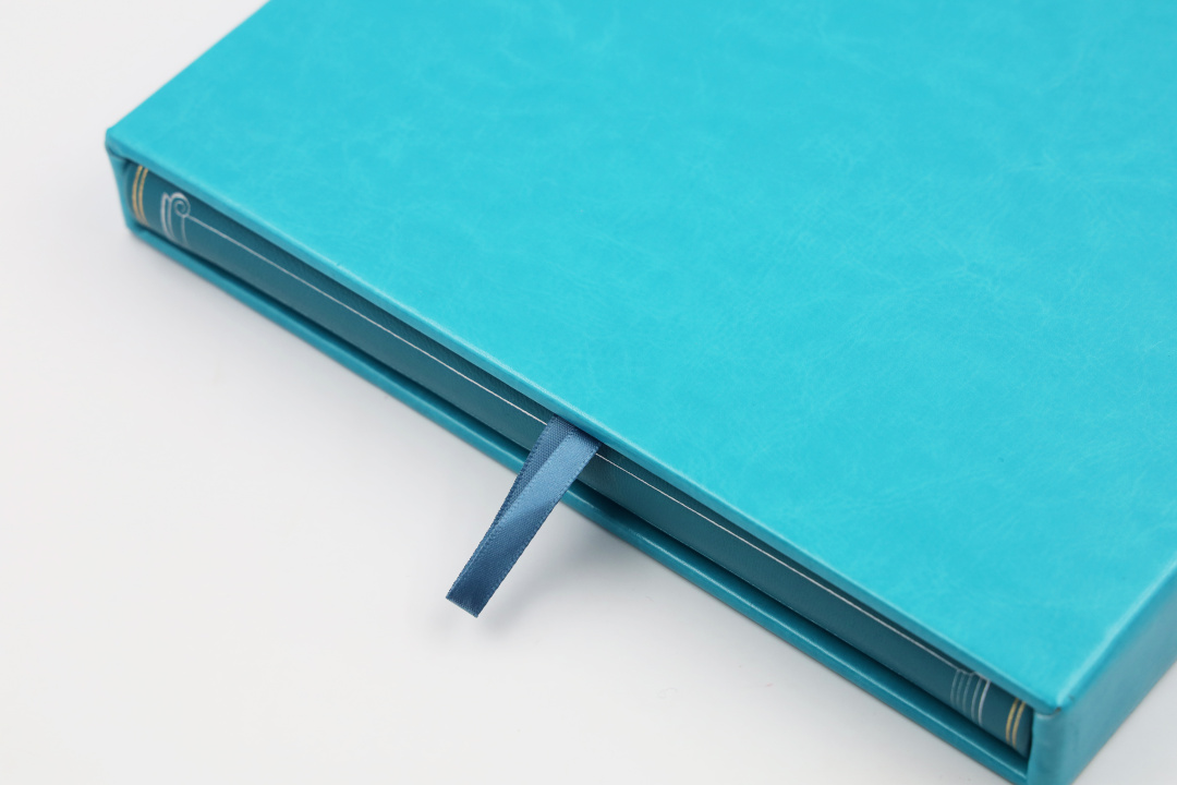 书盒为仿皮材质,正面为乔伊斯签名烫金;书盒内置书签带,方便笔记本取出