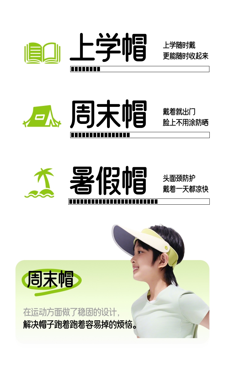 【26春夏新品】蕉下儿童运动轻薄天际防晒帽TS736