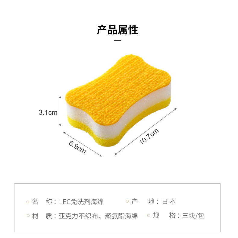 LEC激落君亚克力无纺布清洁海棉(淡黄色)