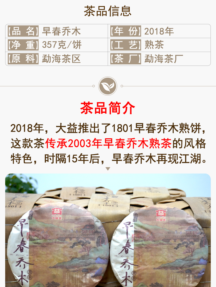 2018年大益1801早春乔木熟茶饼 很甜润经典 高品质大益熟茶饼 干仓真品香