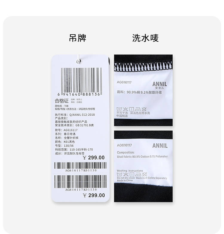 【实体店同款】女童全腰针织裤春季新款安奈儿童装AG616117