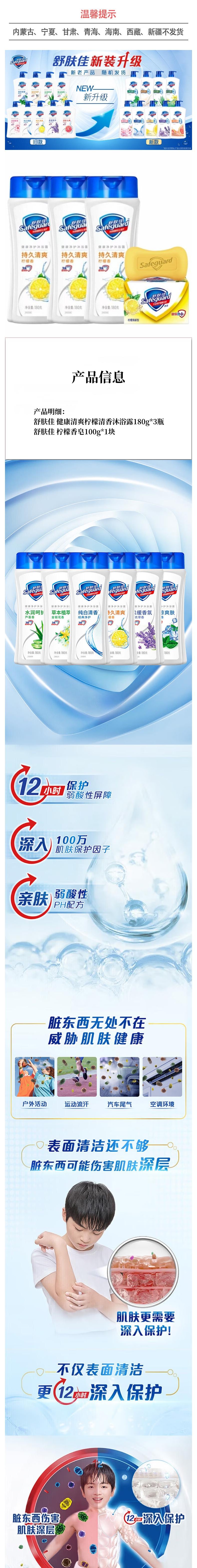 舒肤佳 健康清爽柠檬清香沐浴露180g*3瓶+柠檬香皂100g*1块 PGZ831
