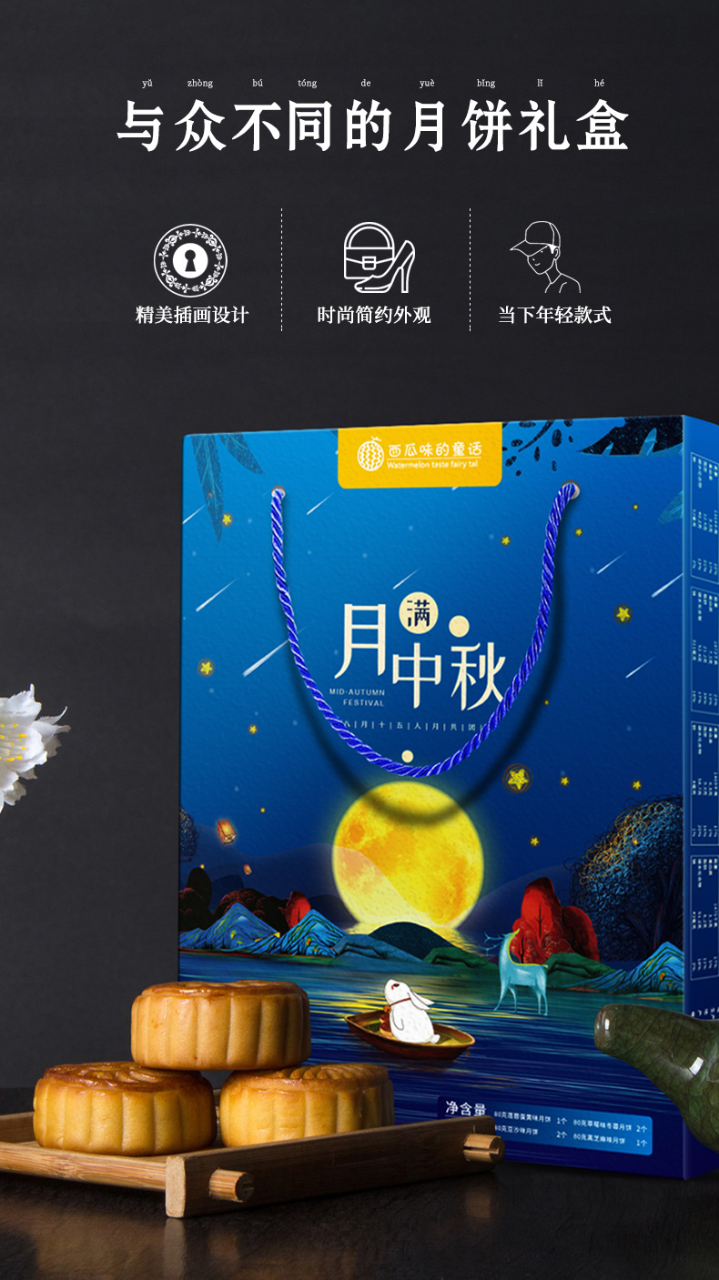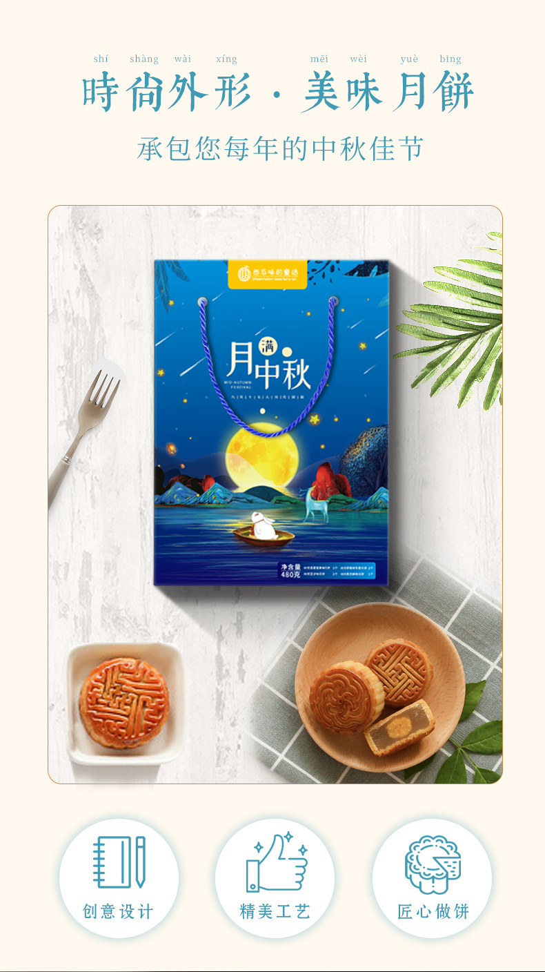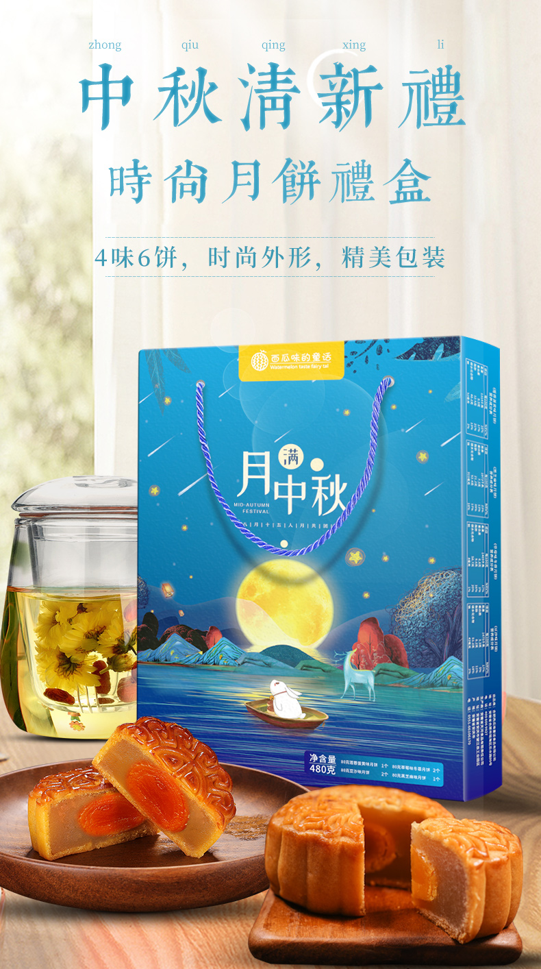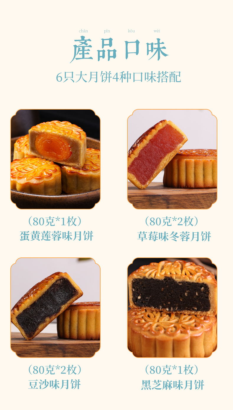 【中秋团圆礼】经典广式月饼·月满中秋清新礼6饼4味/480g月饼礼盒