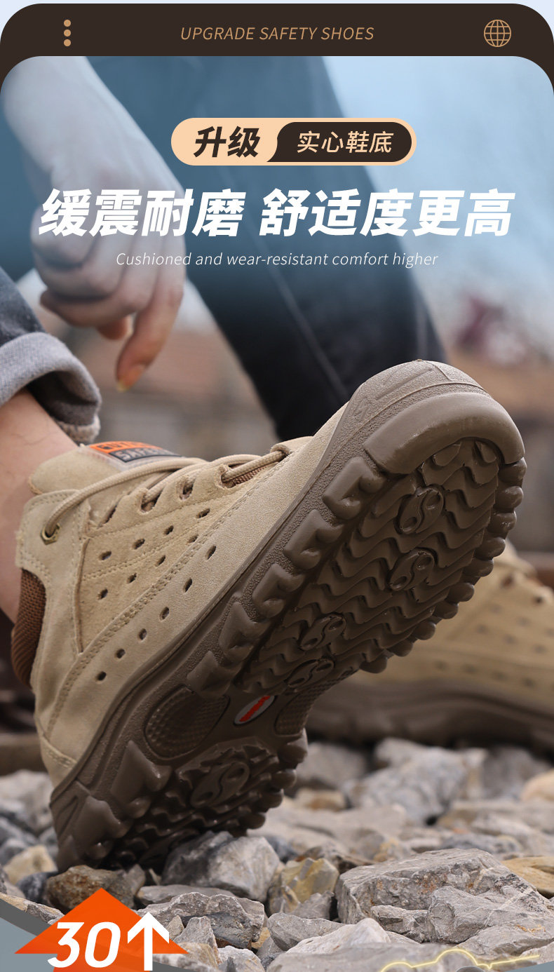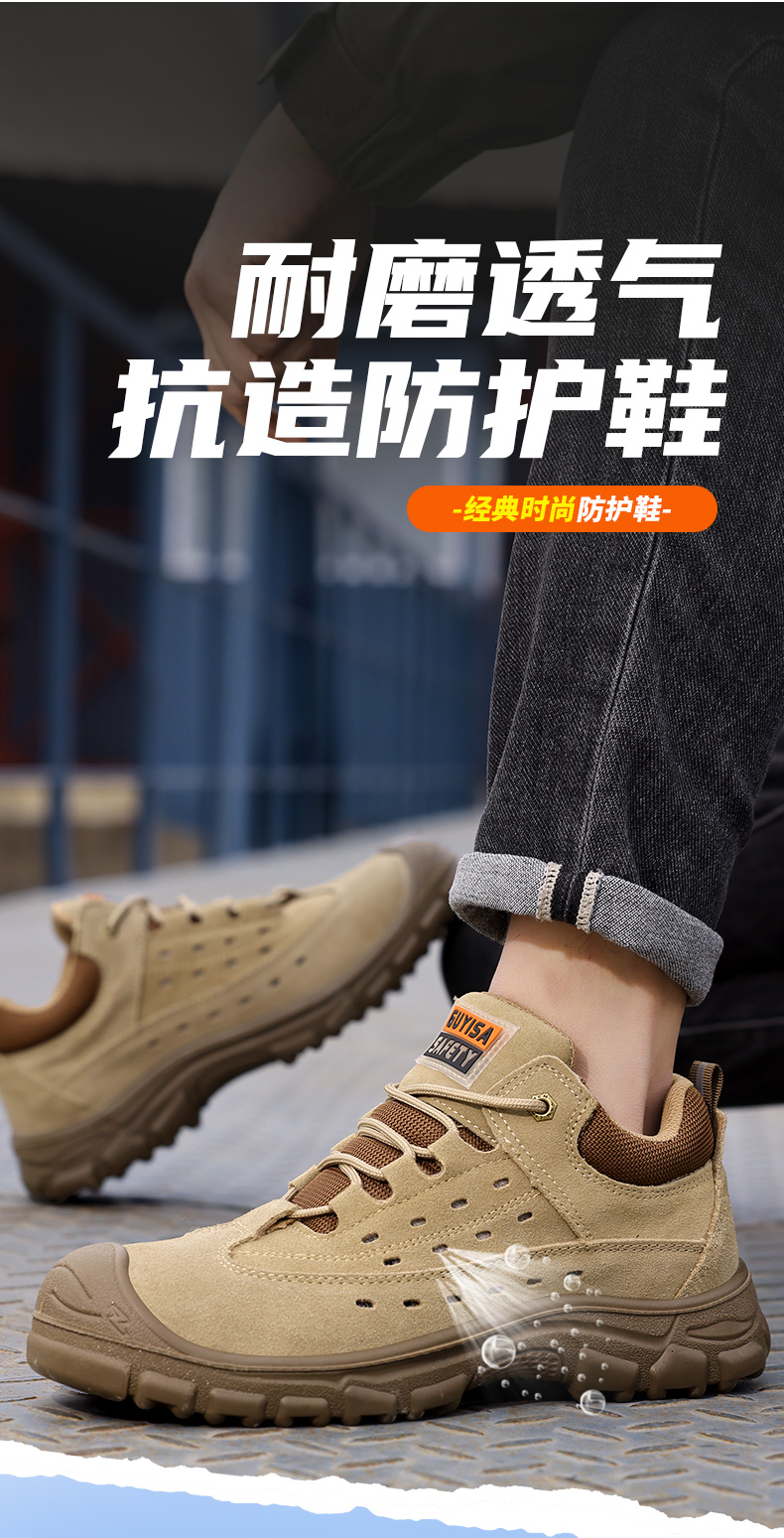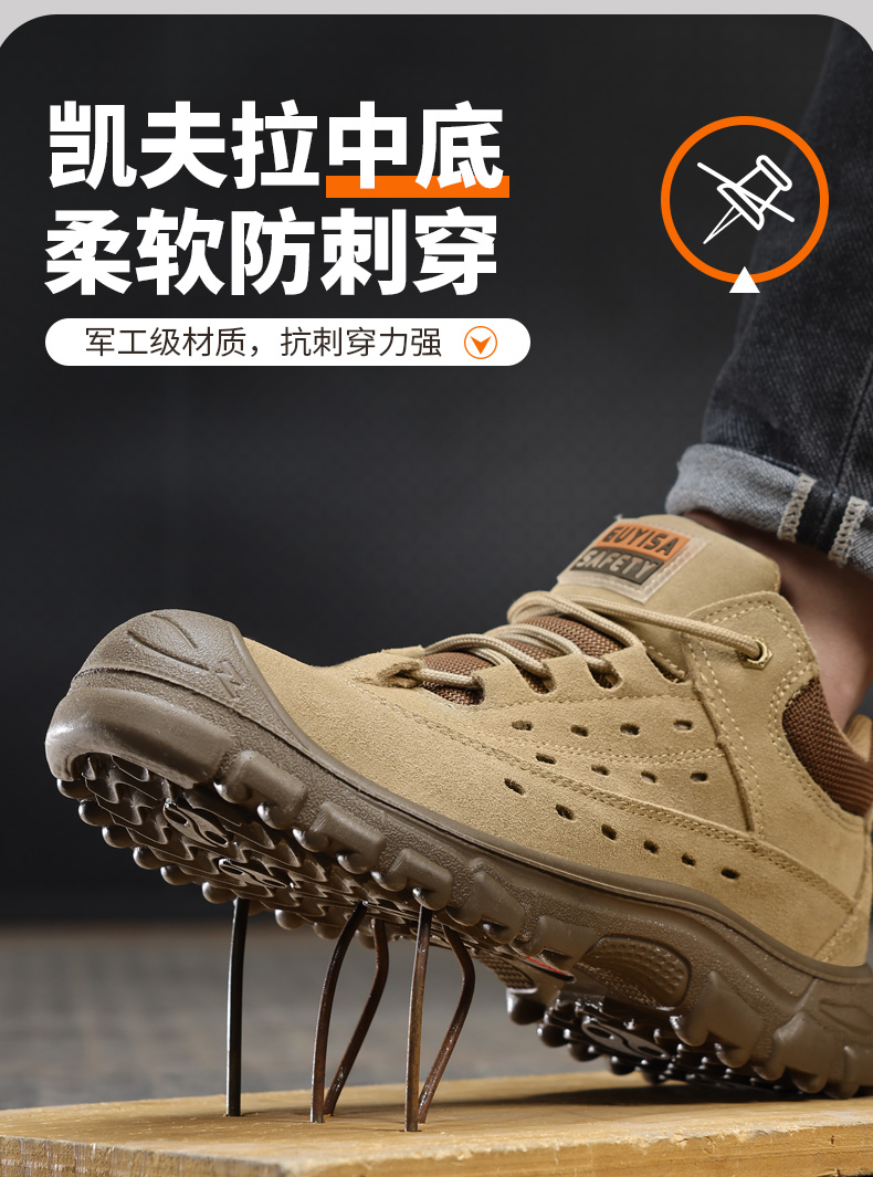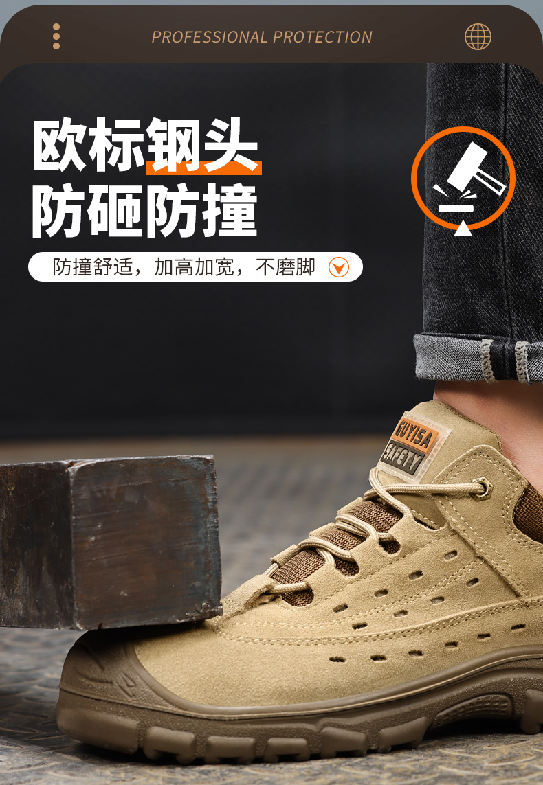 夏季款透气劳保鞋男防砸防刺实心底安全鞋钢包头工作鞋反绒皮焊工