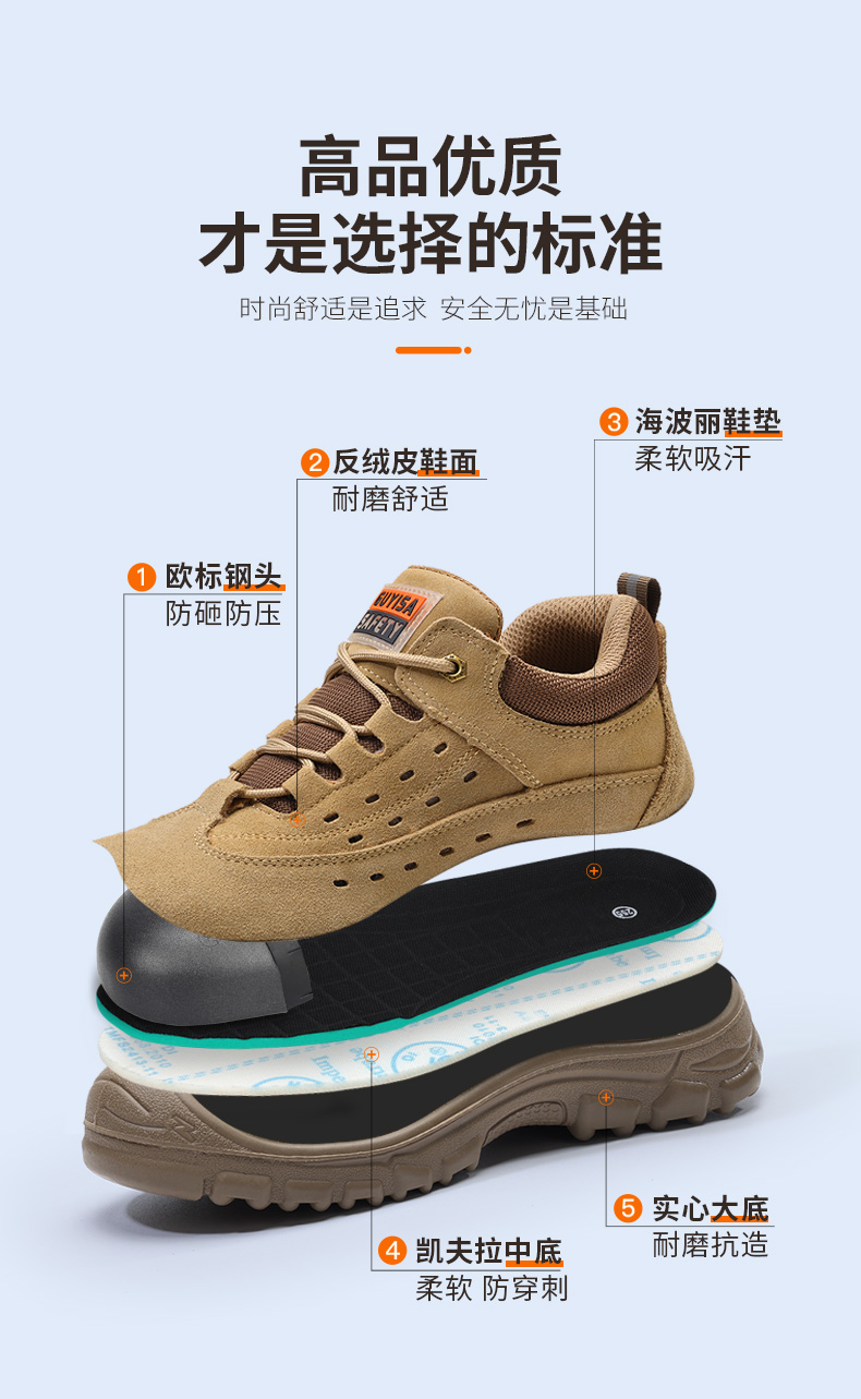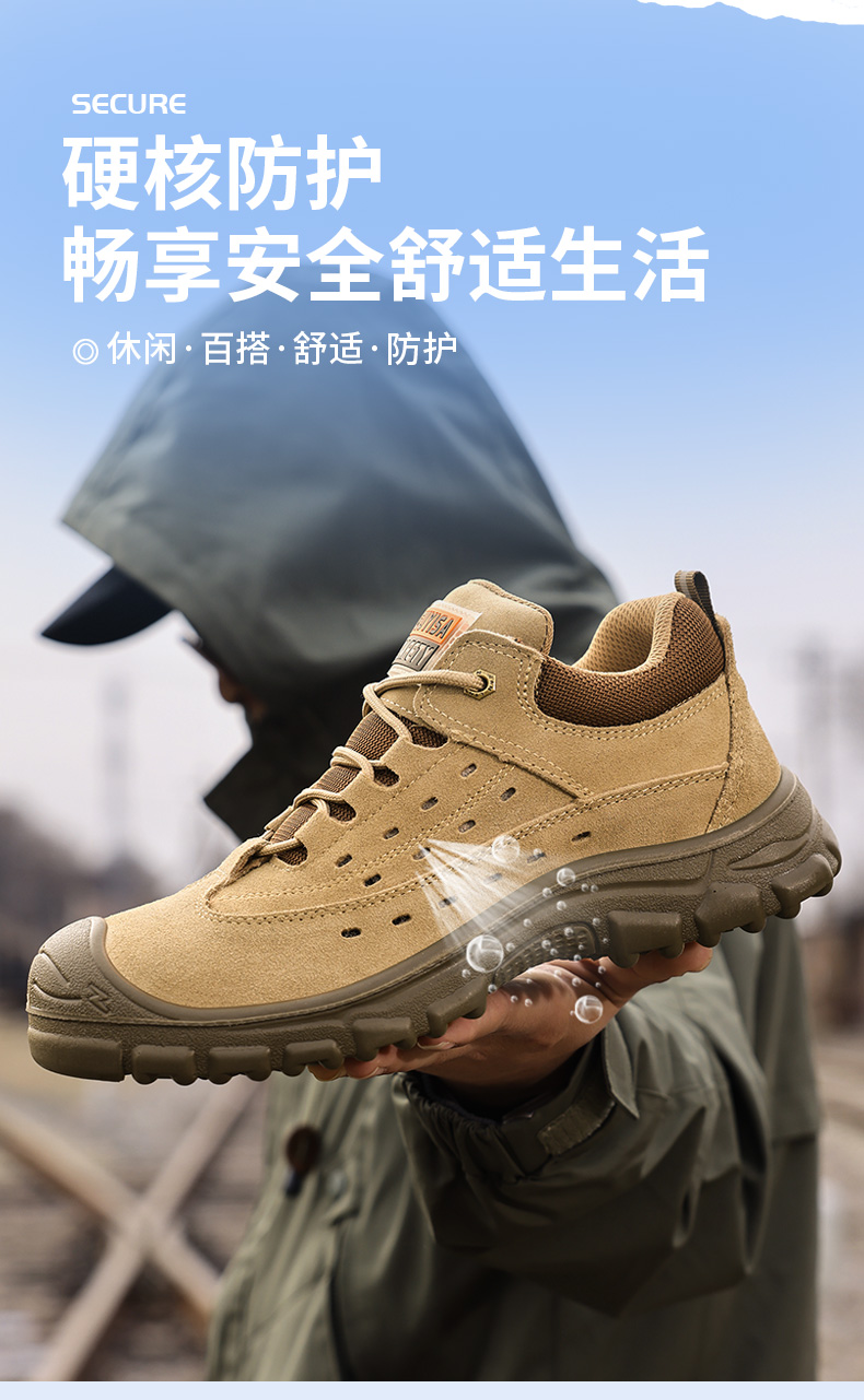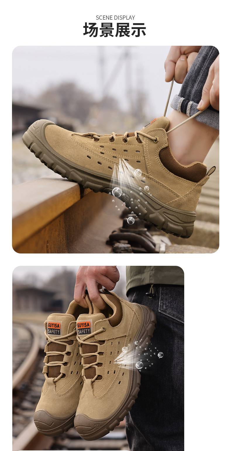 夏季款透气劳保鞋男防砸防刺实心底安全鞋钢包头工作鞋反绒皮焊工