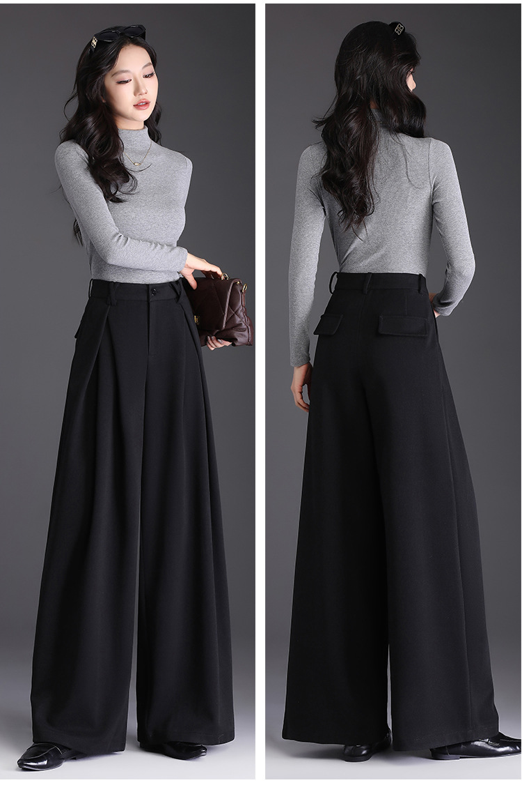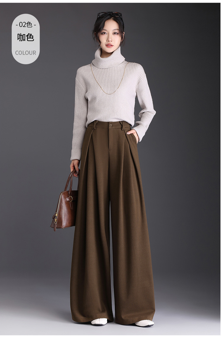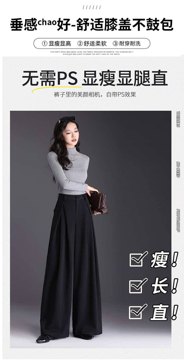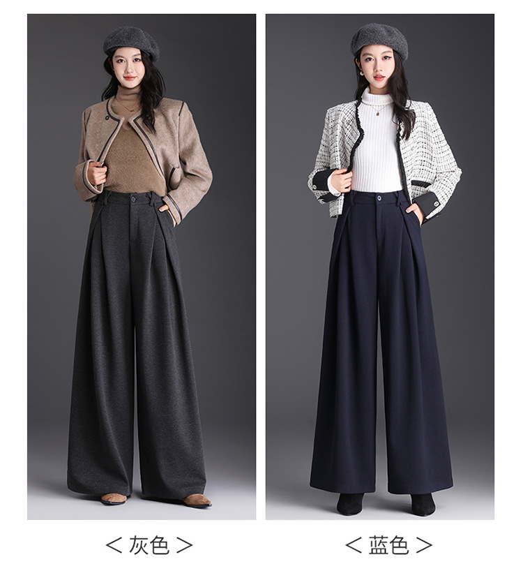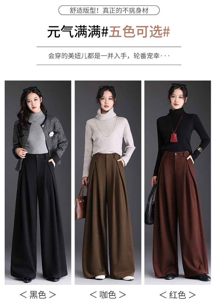 QYM A632-Y休闲毛呢阔腿裤时尚气质宽松大脚裤长款拖地裤 商品图1