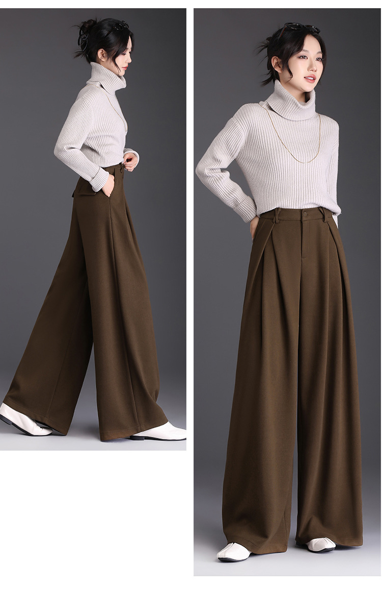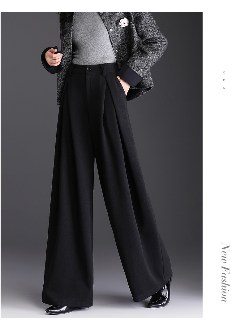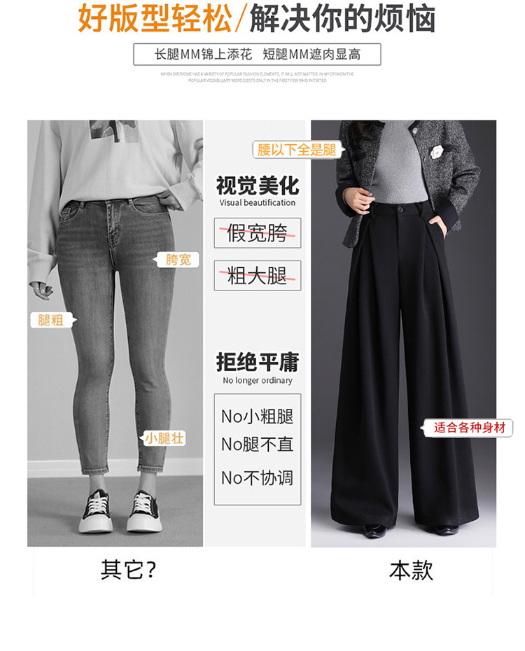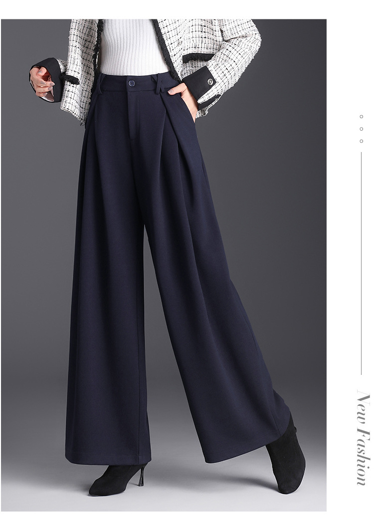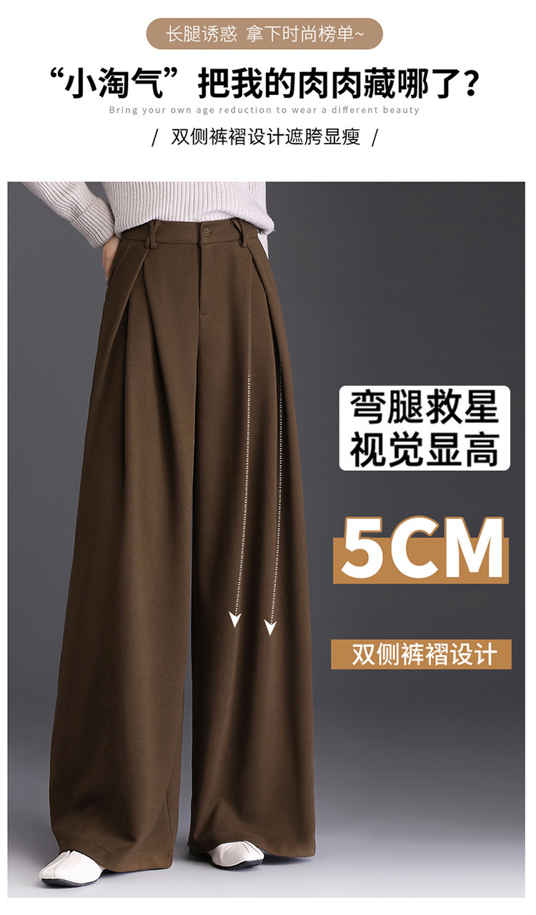 QYM A632-Y休闲毛呢阔腿裤时尚气质宽松大脚裤长款拖地裤 商品图1