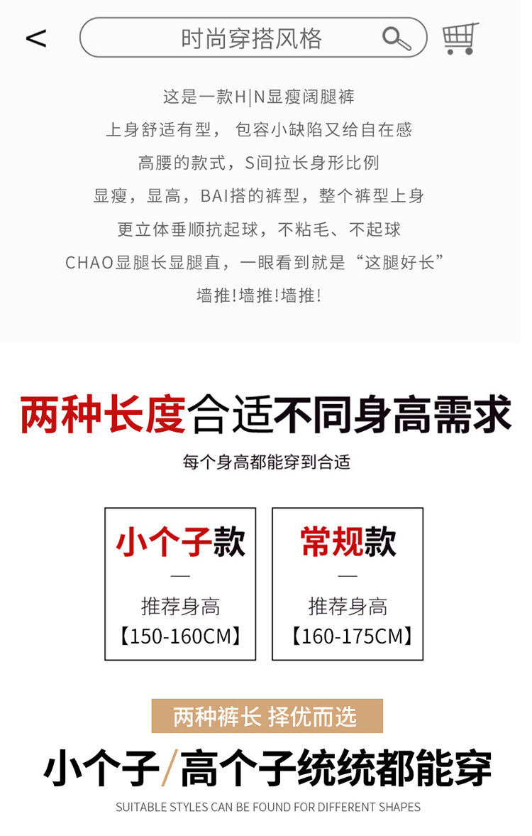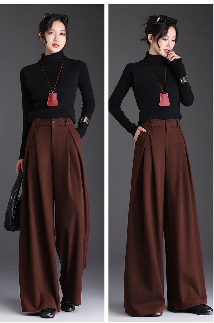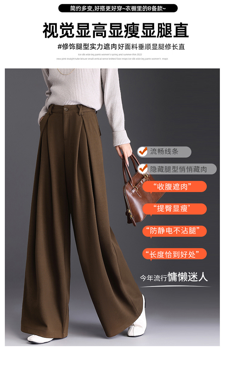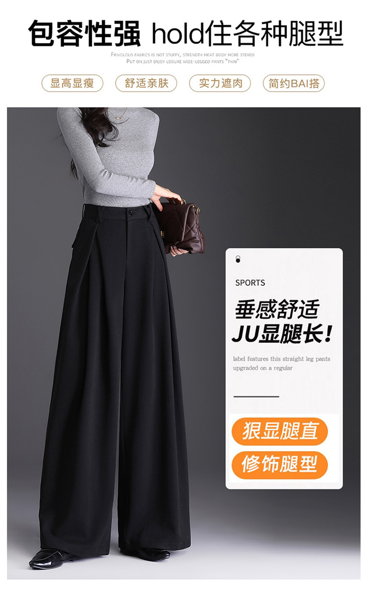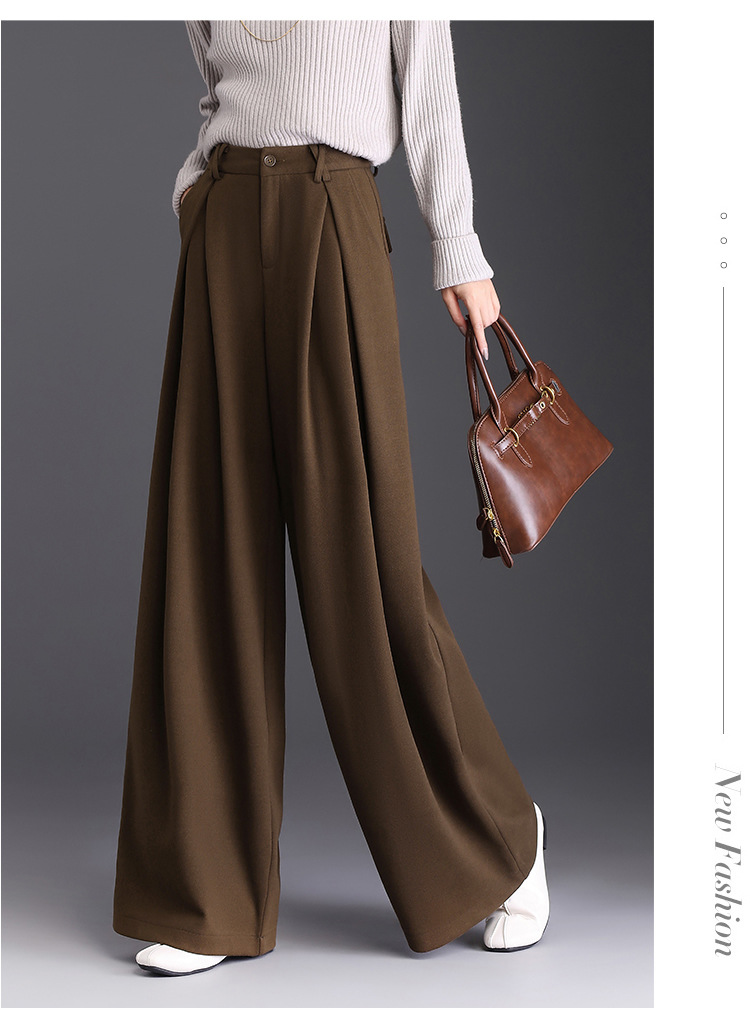 QYM A632-Y休闲毛呢阔腿裤时尚气质宽松大脚裤长款拖地裤 商品图1