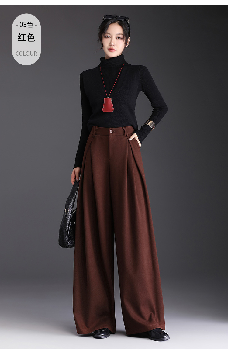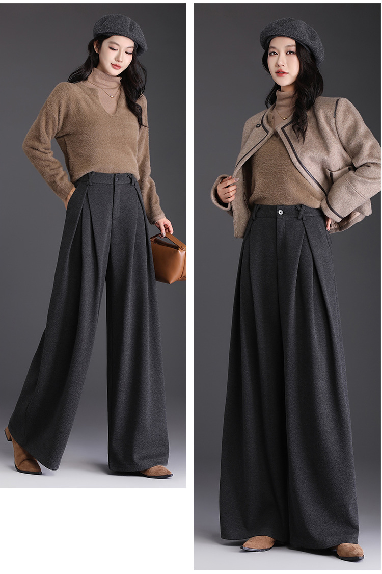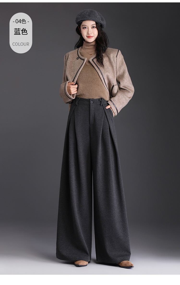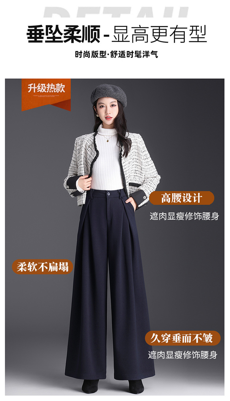 QYM A632-Y休闲毛呢阔腿裤时尚气质宽松大脚裤长款拖地裤 商品图4
