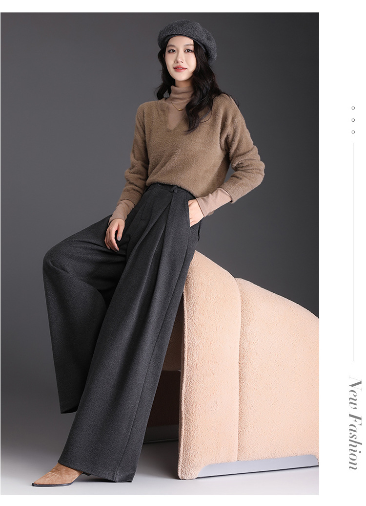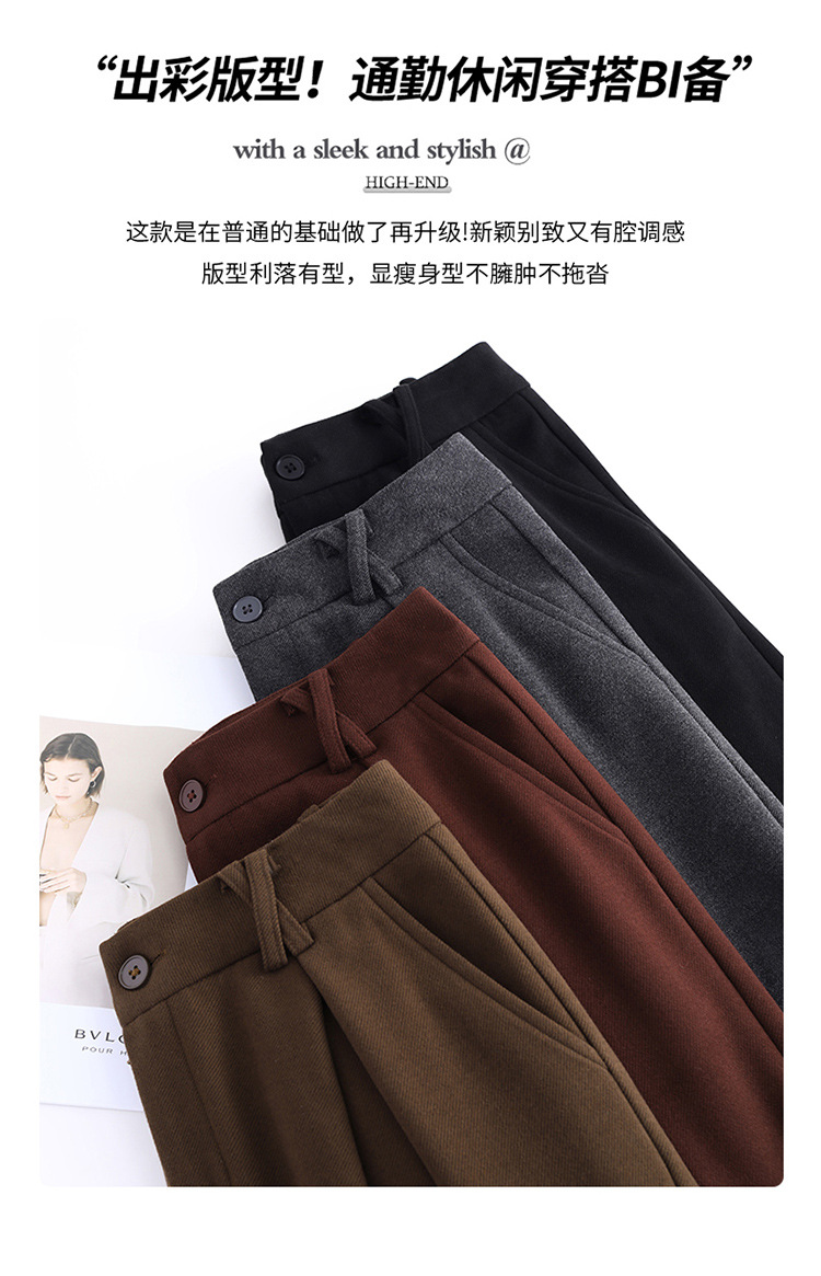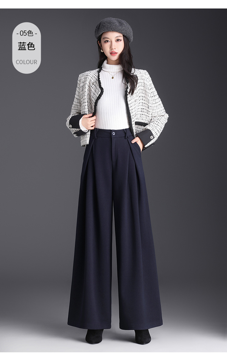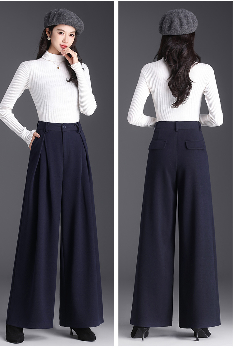 QYM A632-Y休闲毛呢阔腿裤时尚气质宽松大脚裤长款拖地裤 商品图4