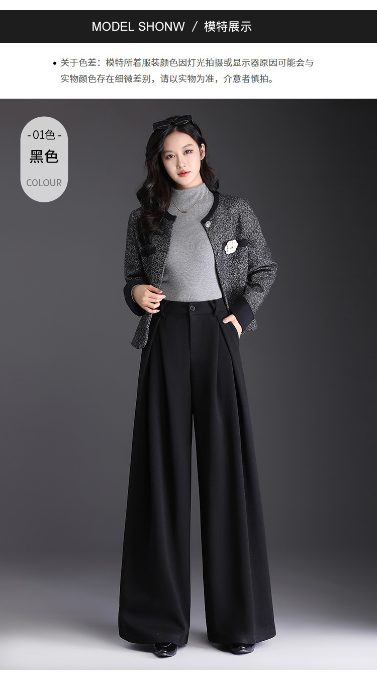 QYM A632-Y休闲毛呢阔腿裤时尚气质宽松大脚裤长款拖地裤 商品图2