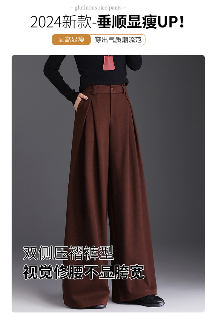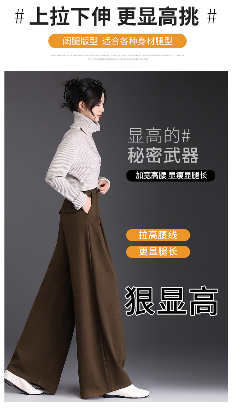 QYM A632-Y休闲毛呢阔腿裤时尚气质宽松大脚裤长款拖地裤 商品图0