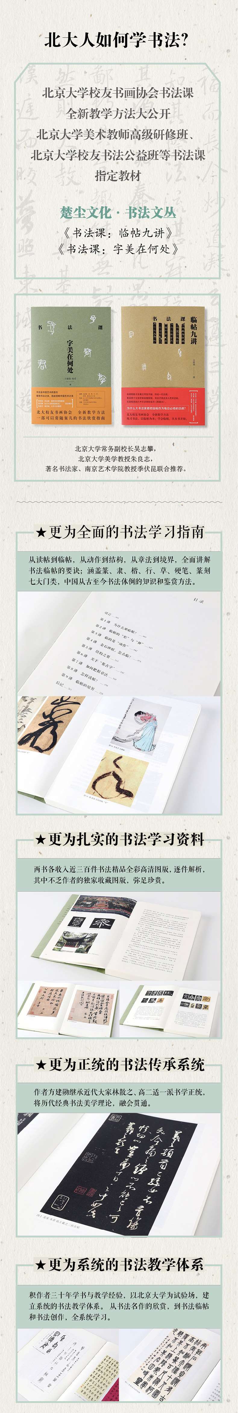 ★更为系统的书法教学体系,积作者三十年学书与教学经验,以北京大学为试验场,建立系统的书法教学体系。 从书法名作的欣赏,到书法临帖和书法创作,全程系统学习。