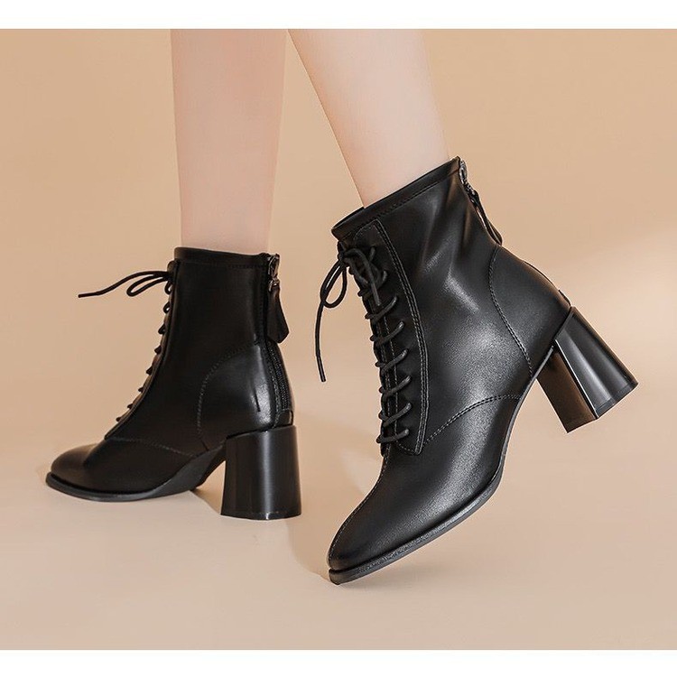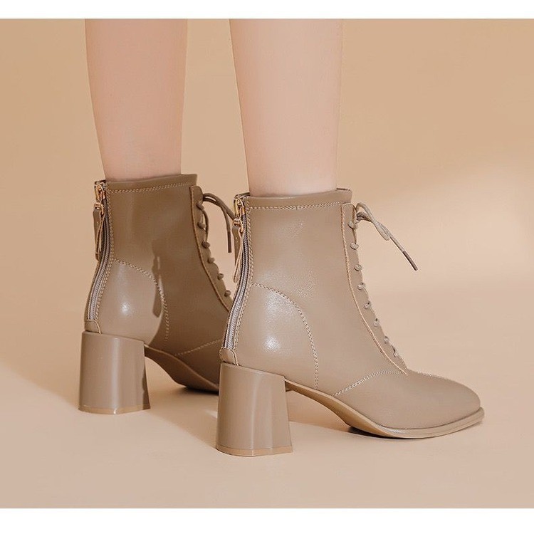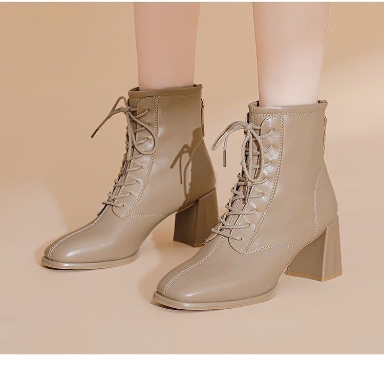 XYXY1098838 韩版时尚气质方头前系带粗跟短筒靴
