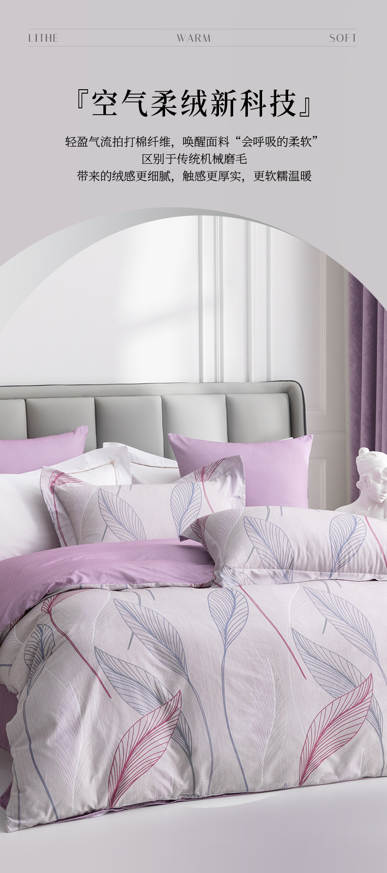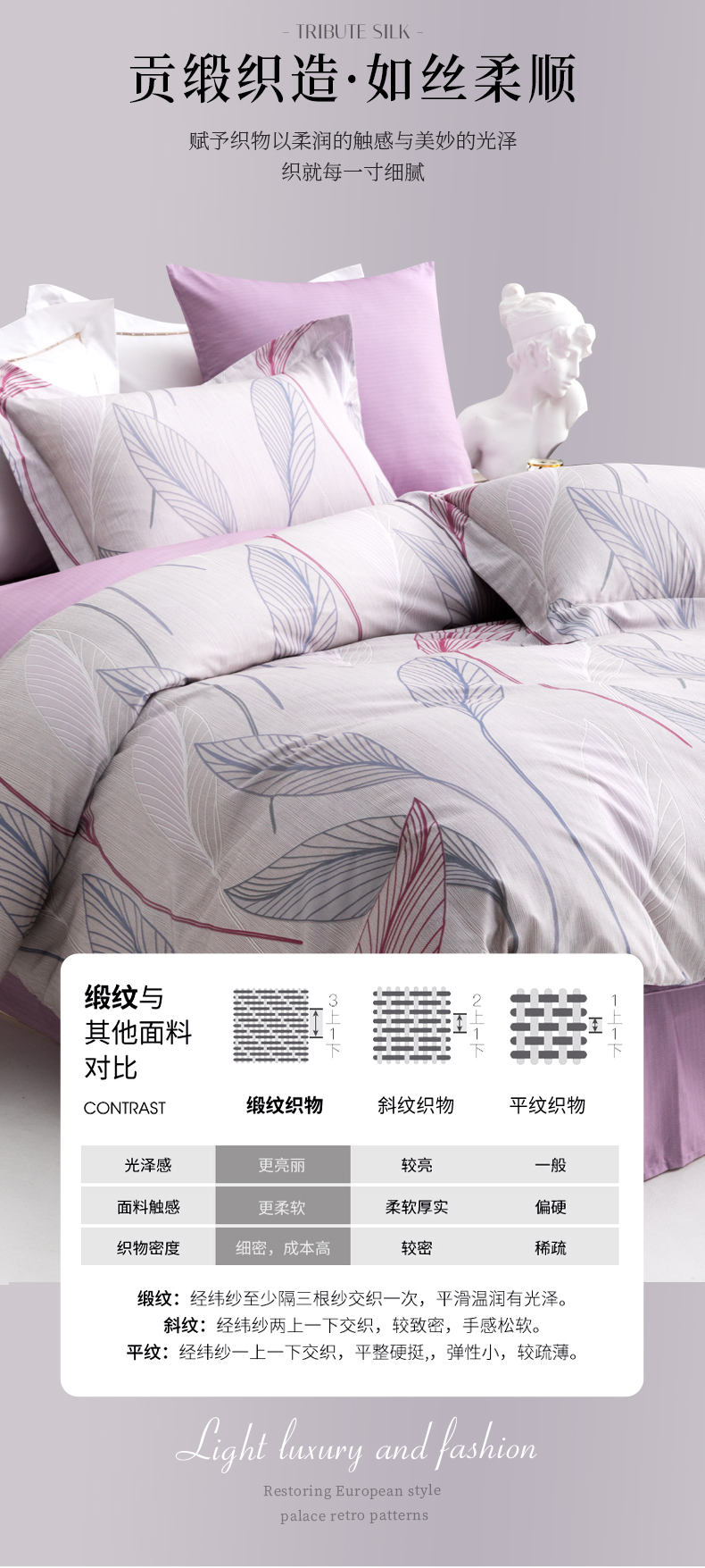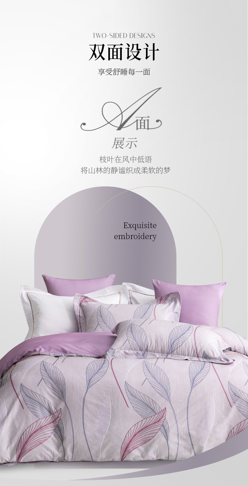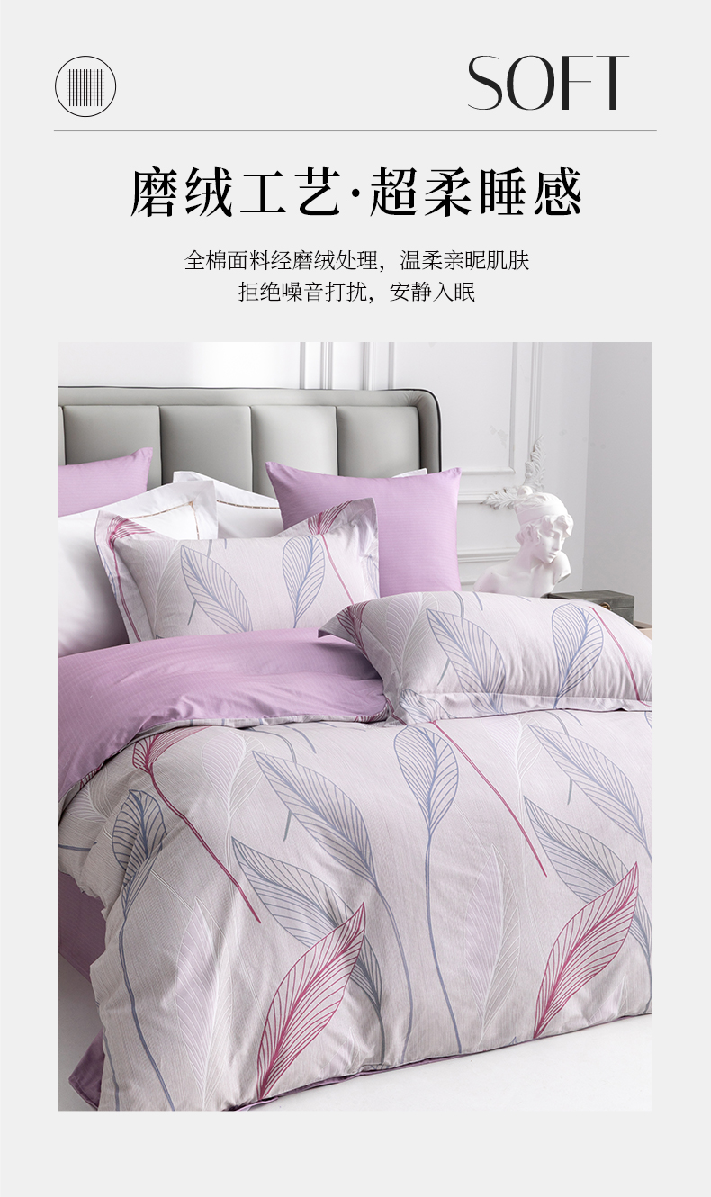 多喜爱 全棉贡缎磨绒四件套 花叶隐【7A抗菌】【精美礼盒包装】高密全棉 优雅花卉 更细腻更厚实更软糯磨绒宽边枕套