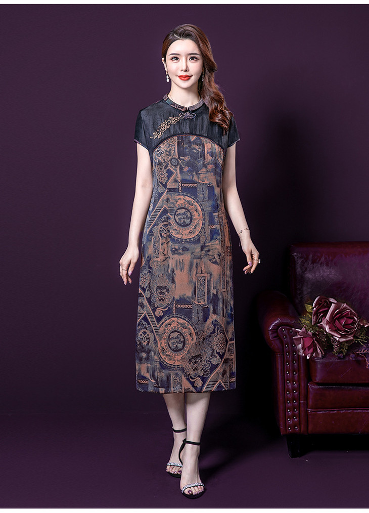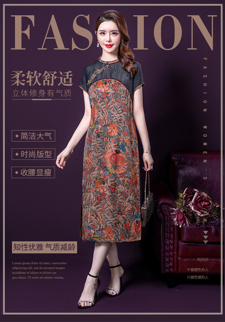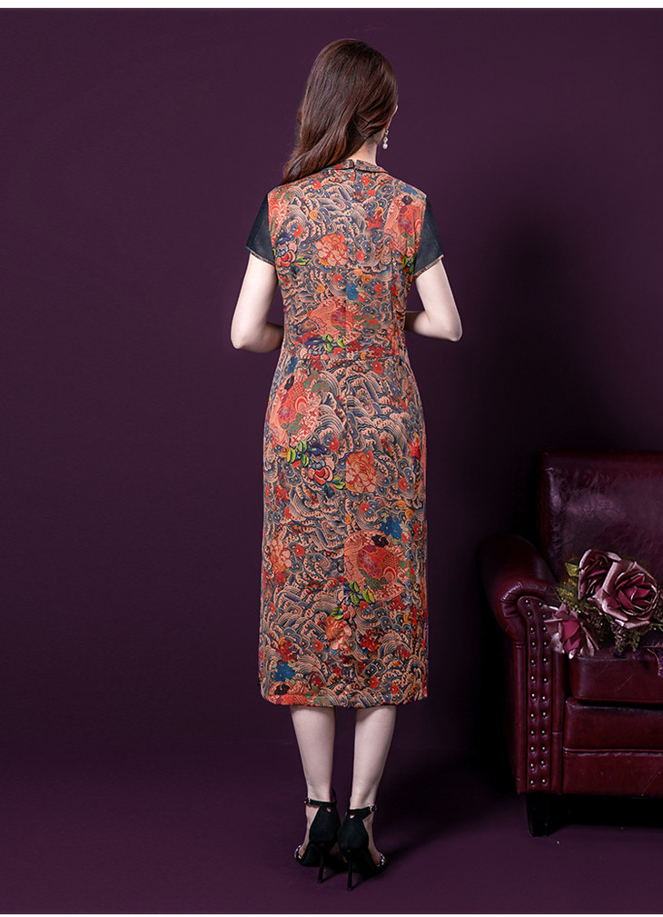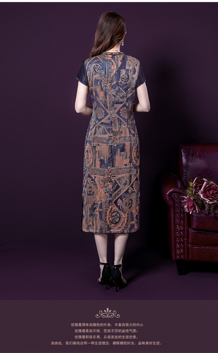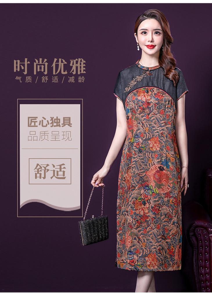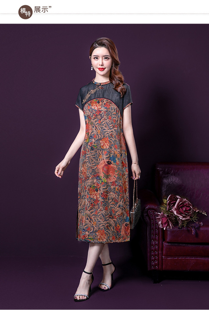 YMR 8317 连衣裙2020夏新款贵夫人复古印花修身裙子
