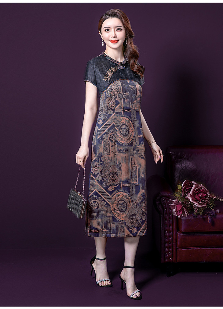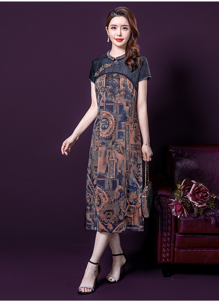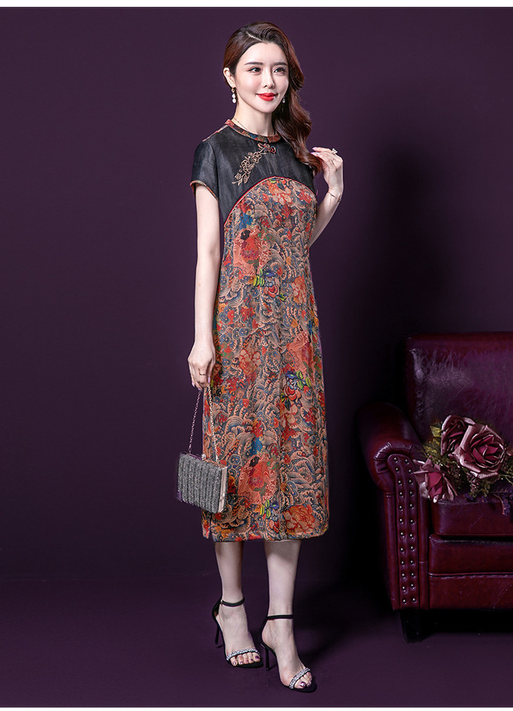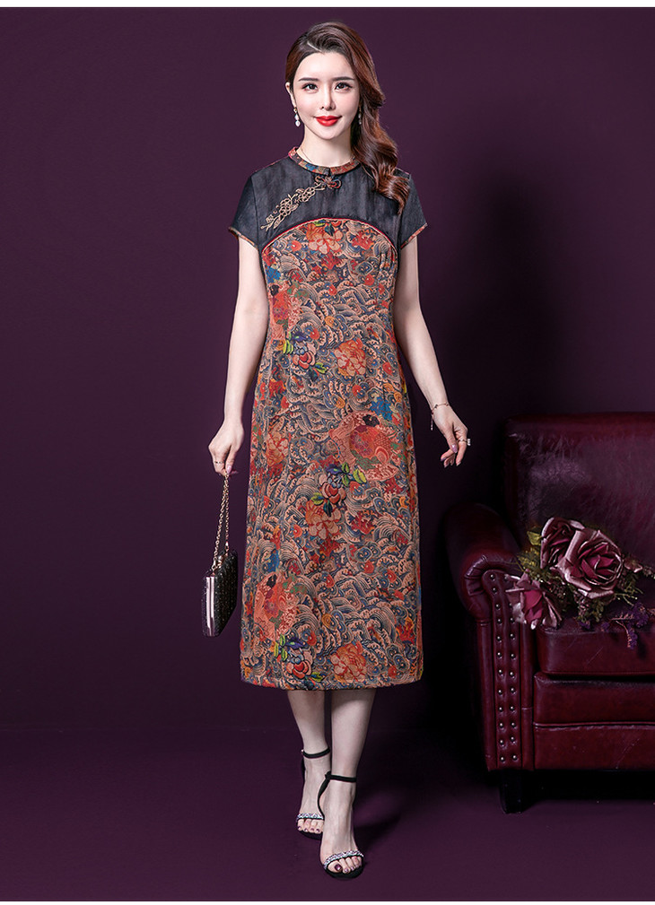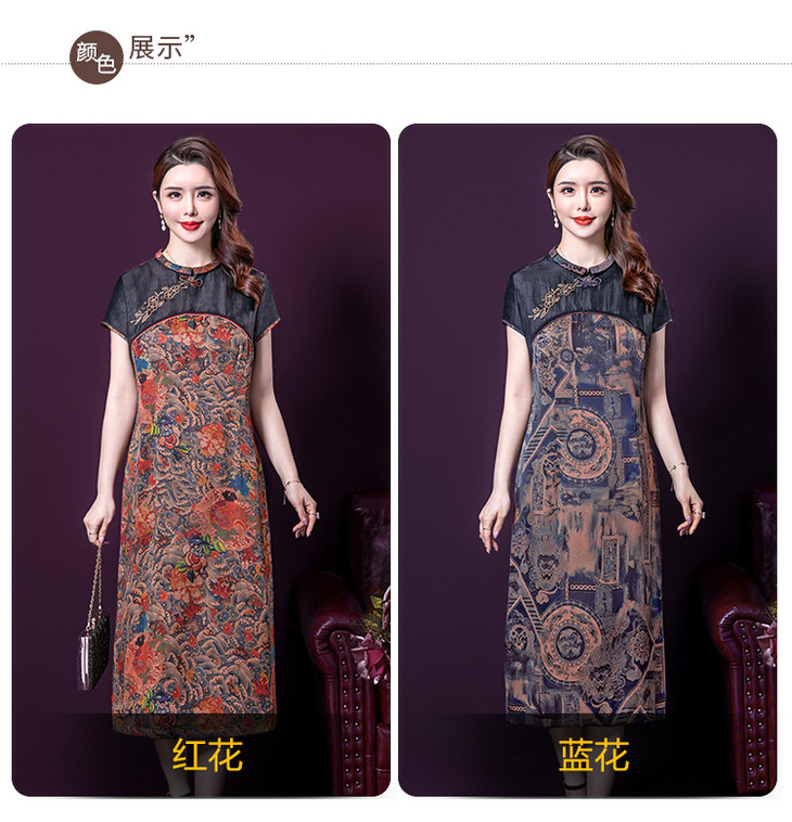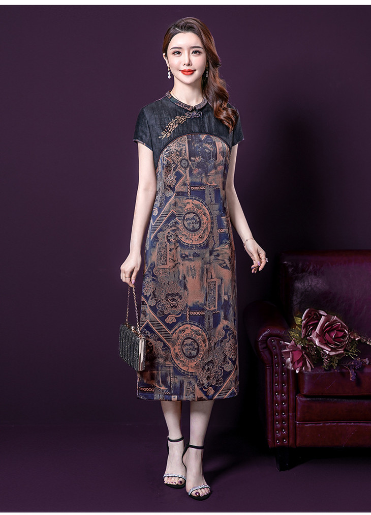 YMR 8317 连衣裙2020夏新款贵夫人复古印花修身裙子