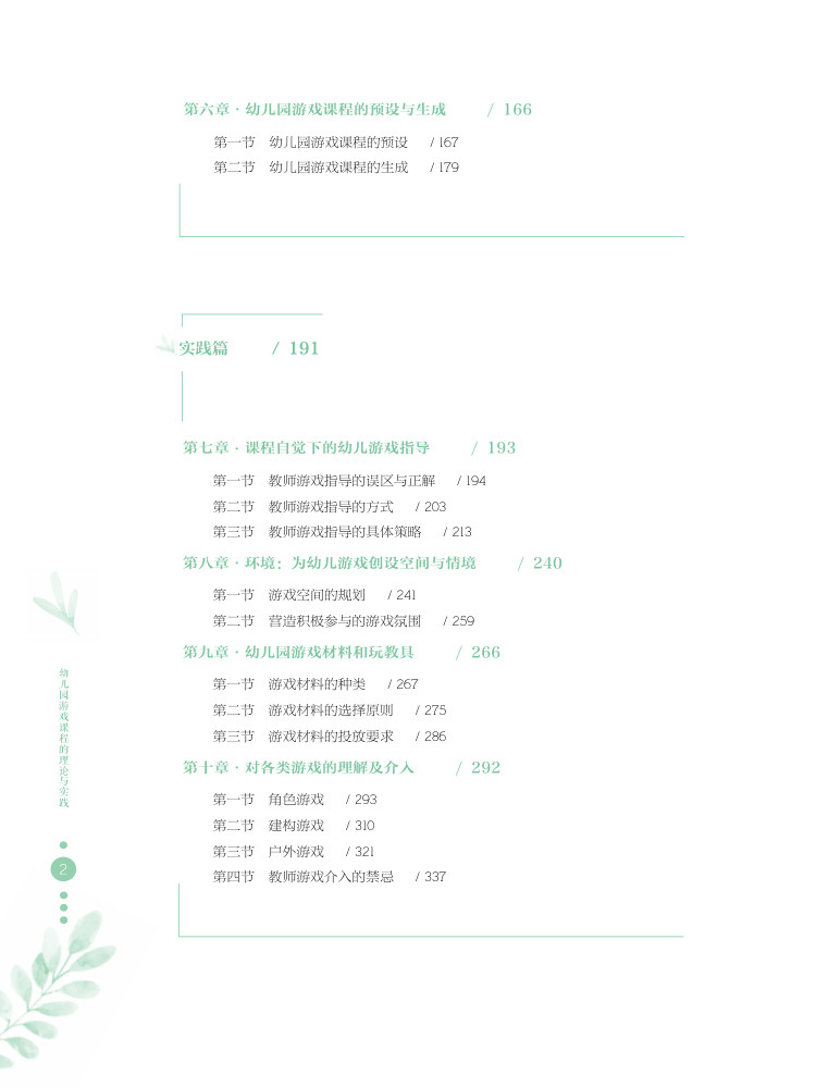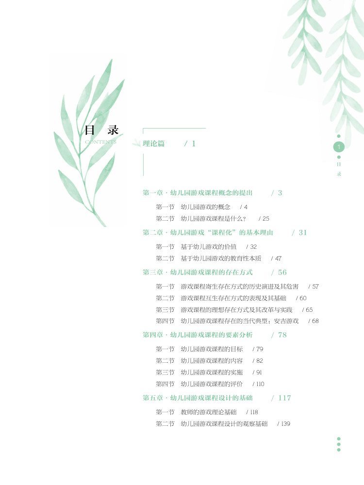 2.聚焦核心主题:着力围绕游戏课程的理论基础及技术规范两大逻辑架构内容,理论篇提供游戏课程的概念解析、存在方式、要素分析、设计框架等,实践篇从基于课程自觉的游戏指导、环境创设、材料提供、各类型游戏介入等维度展开论述,形成从理论到实践的完整逻辑。