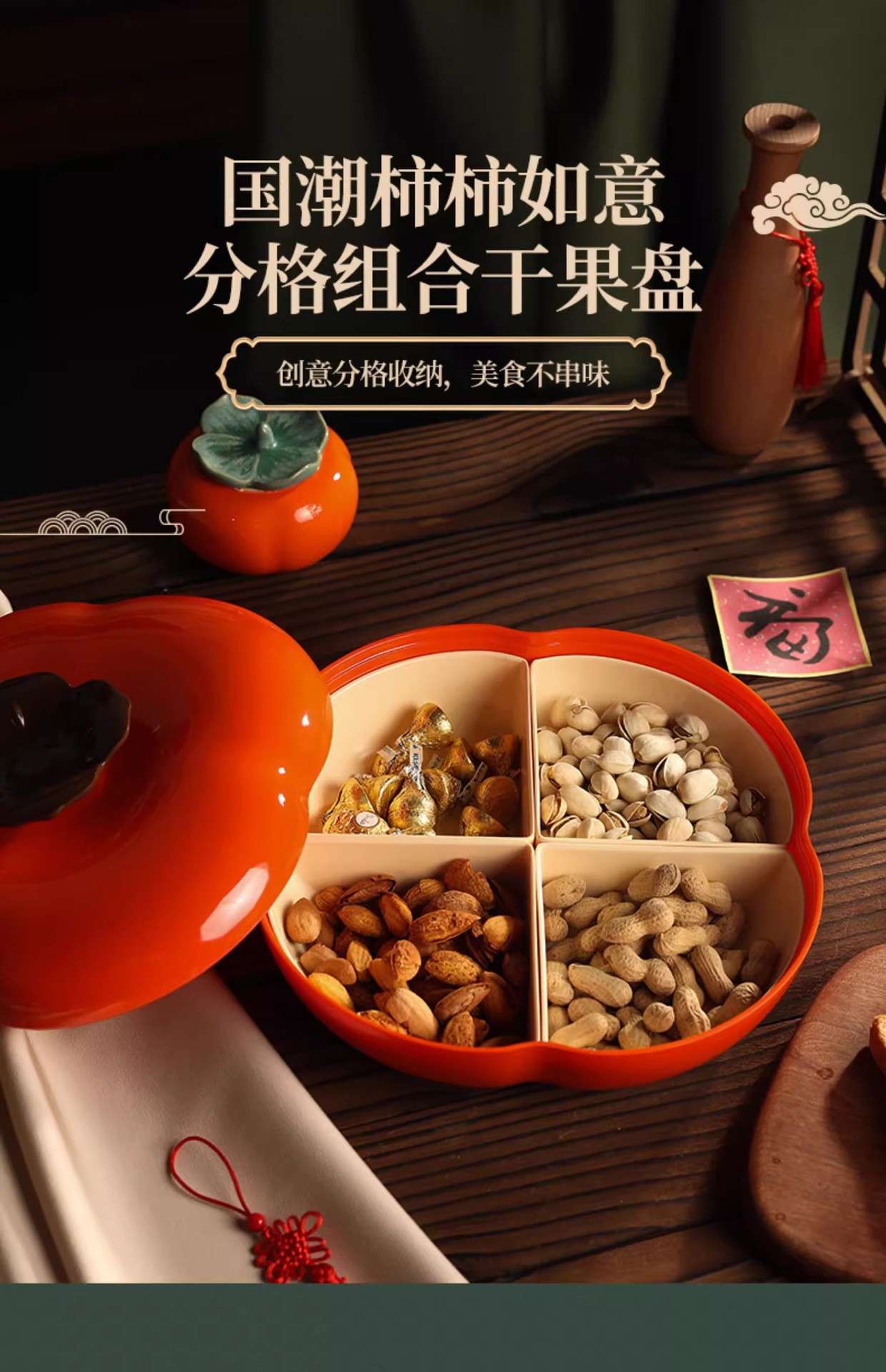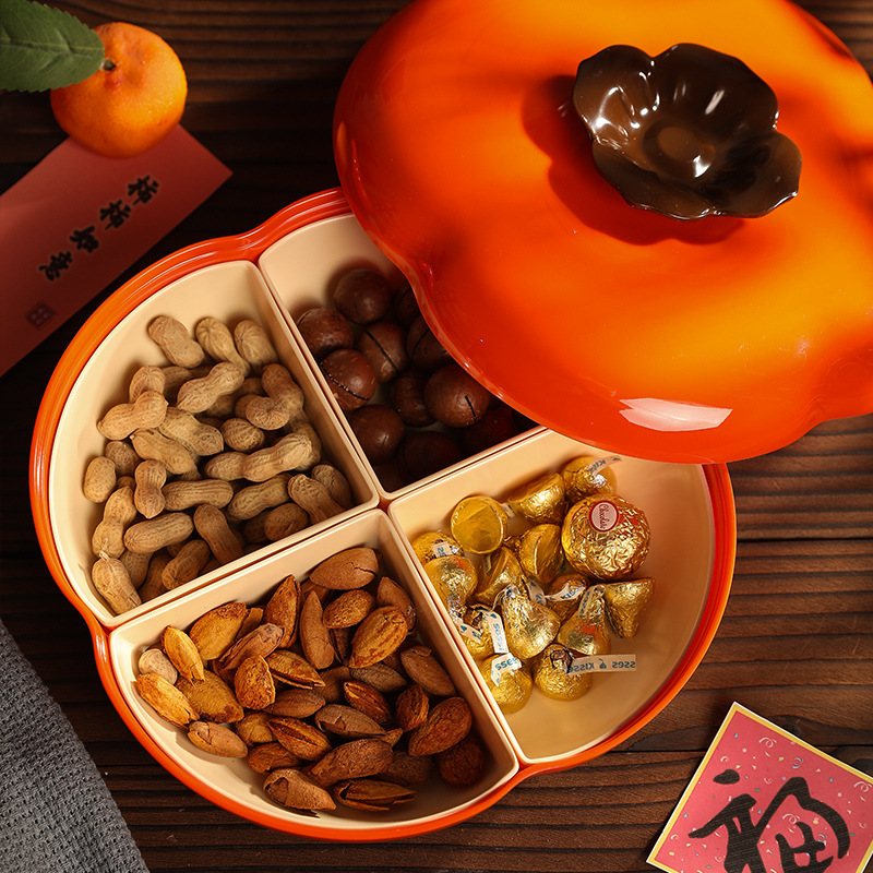 【新年专属果盘❗️造型喜庆特色】过年柿柿如意柿子果盘干果盒家用客厅坚果盘节日装零食水果盘带盖。jc
