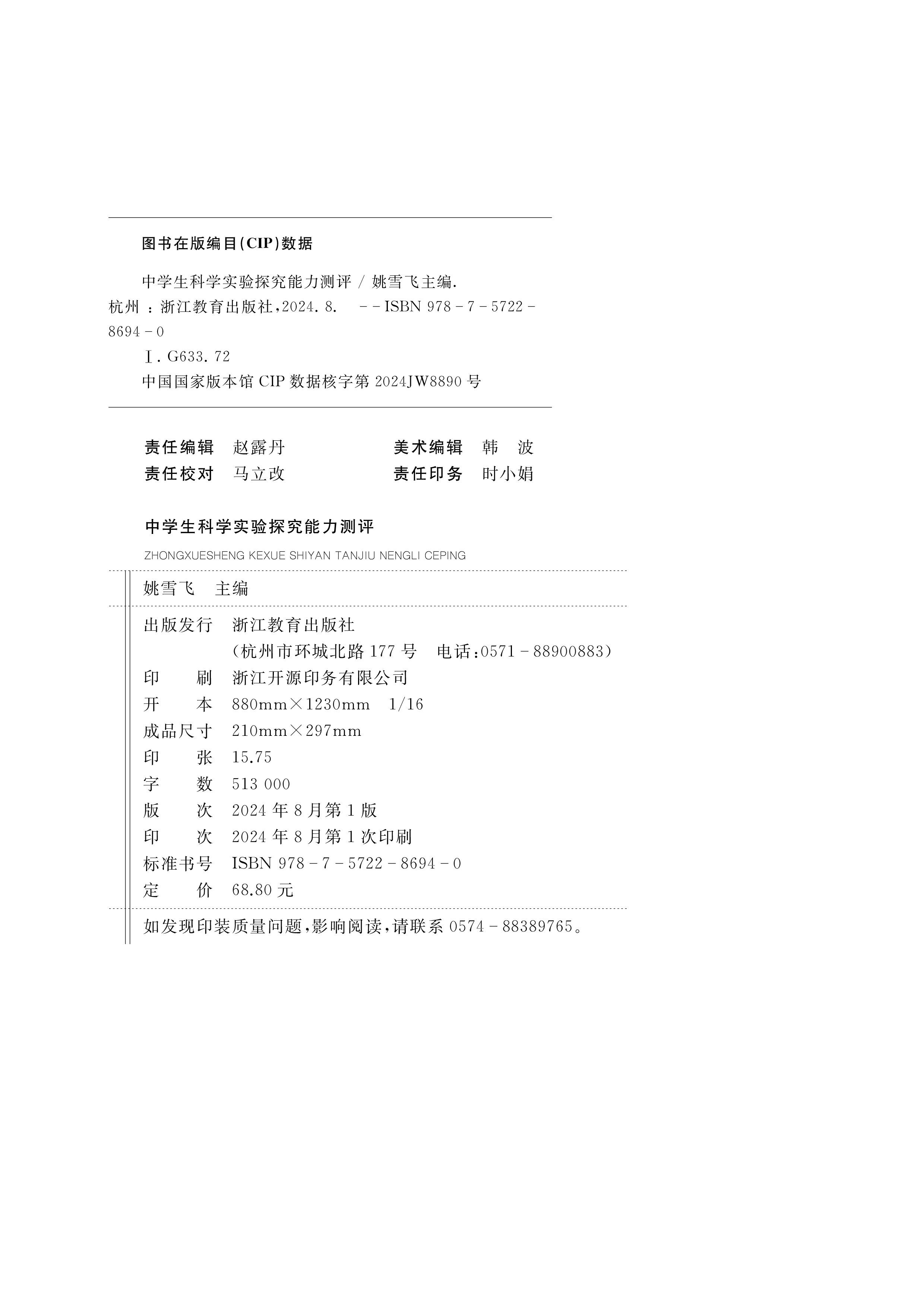 优惠 中学生科学实验探究能力测评(答案附在A本后)