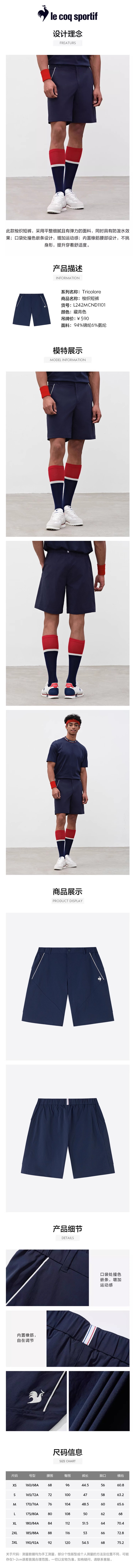 【大都会】乐卡克法国公鸡夏季男子运动梭织短裤防泼水弹力五分裤