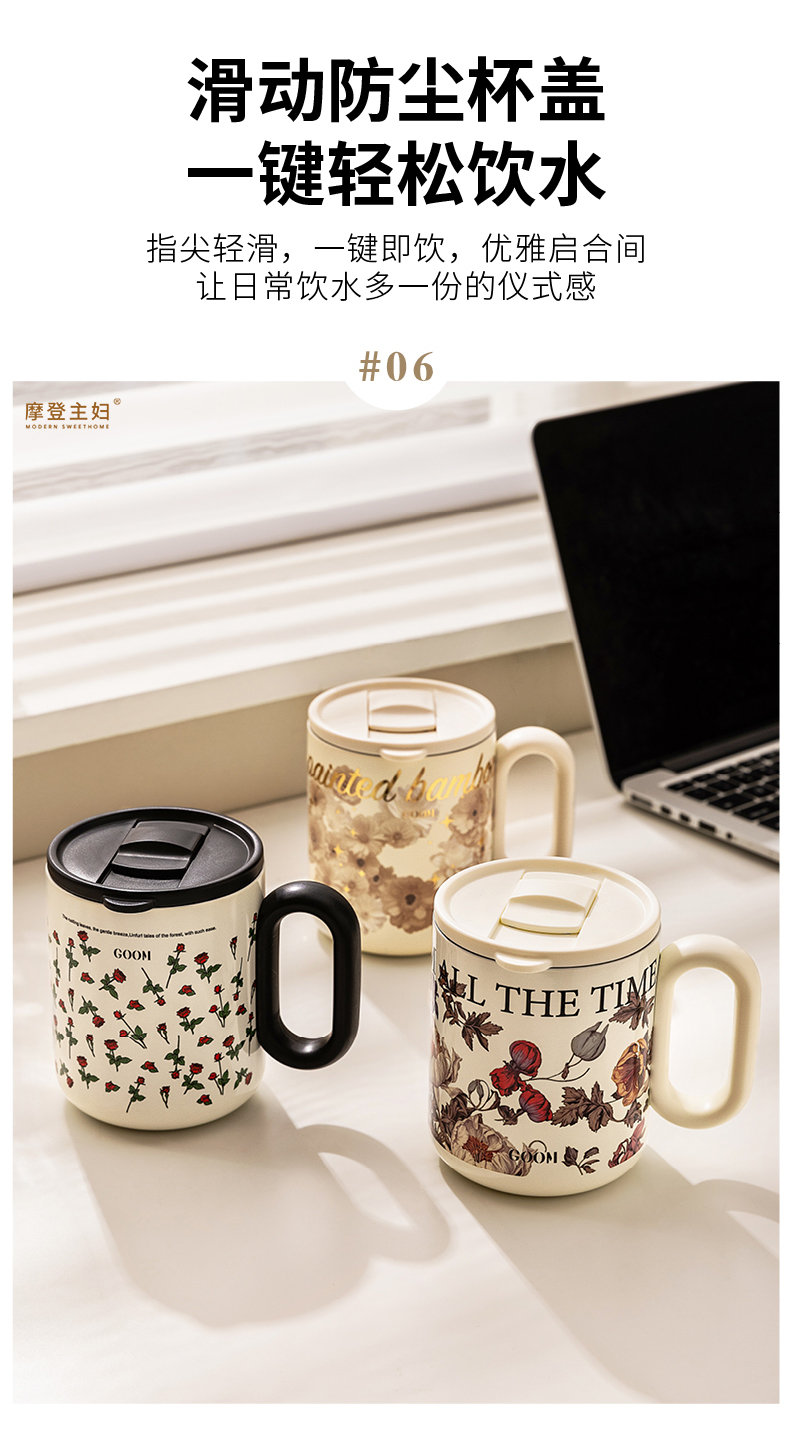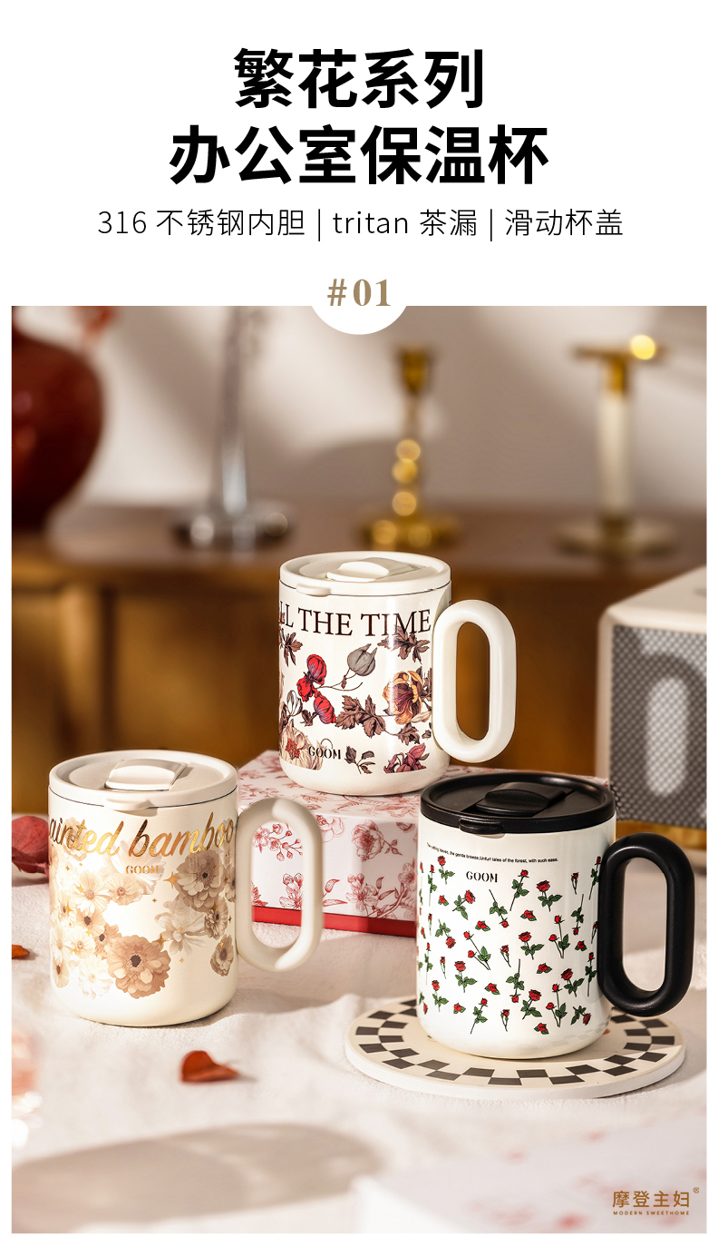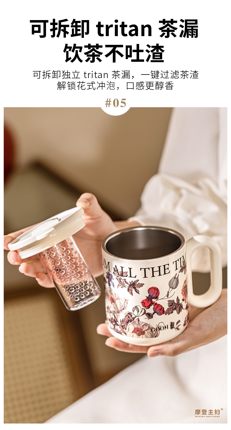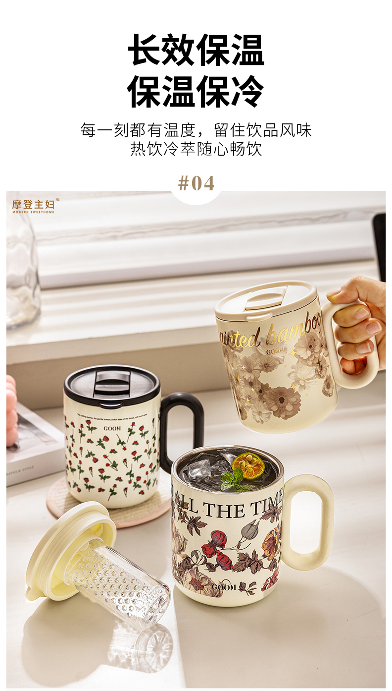 摩登主妇繁华系列保温马克杯女士高颜值2025新款水杯办公室杯子茶水分离杯