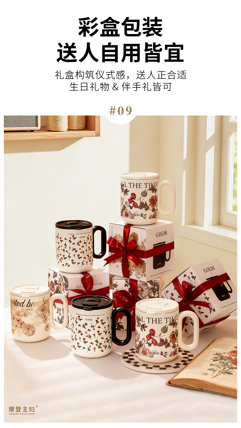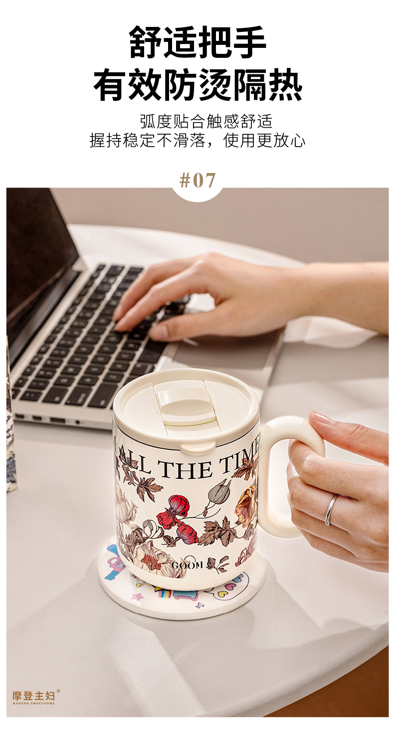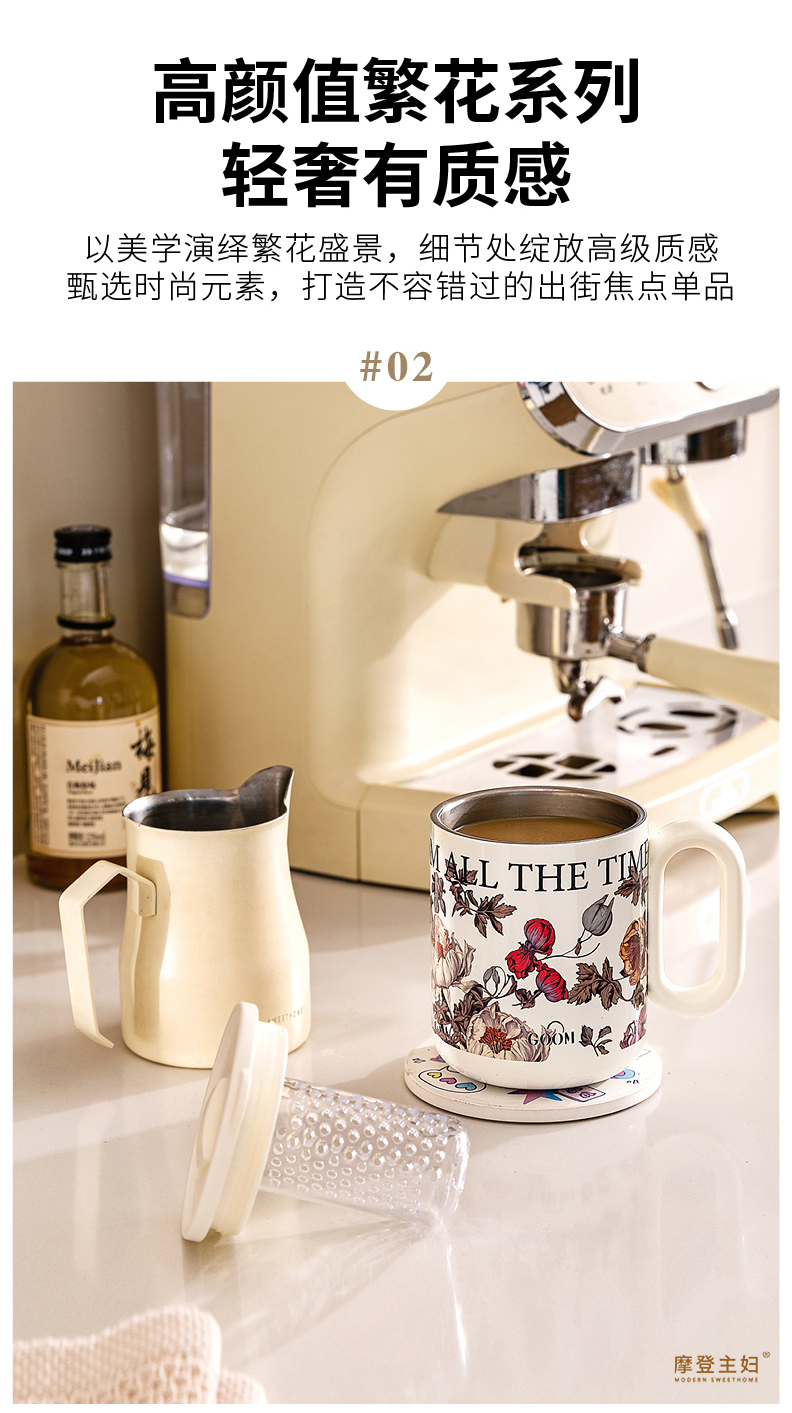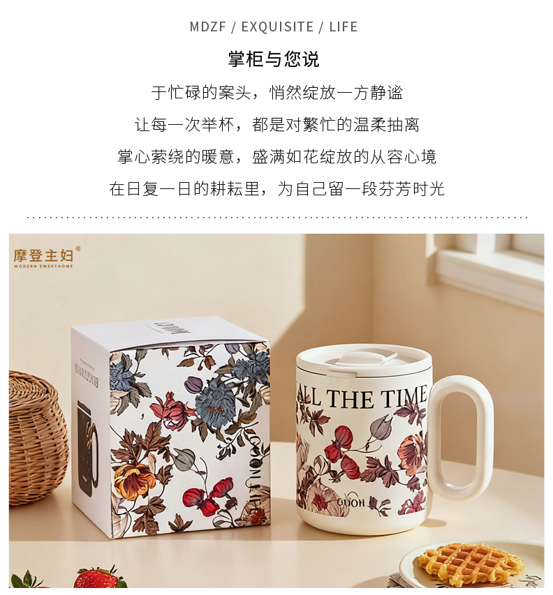 摩登主妇繁华系列保温马克杯女士高颜值2025新款水杯办公室杯子茶水分离杯
