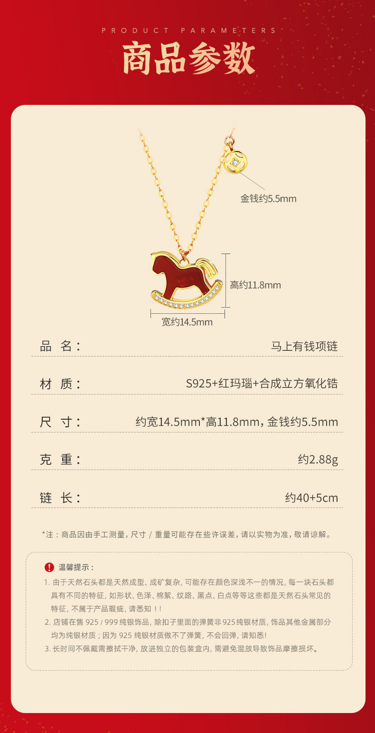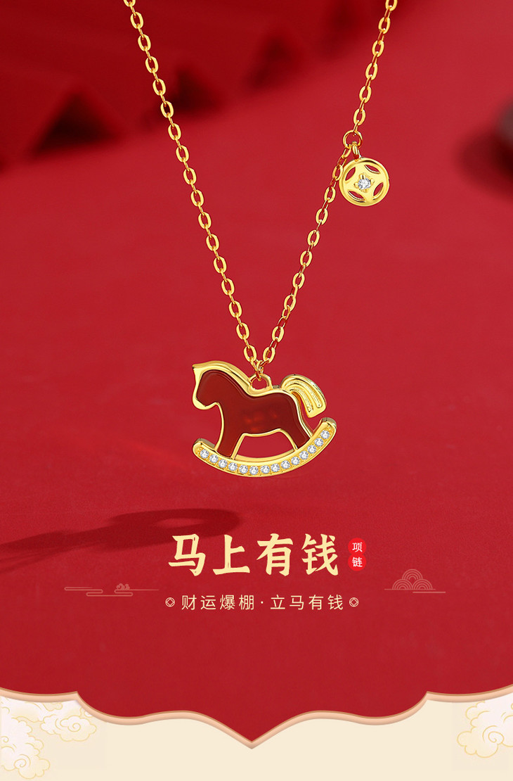 S925纯银新中式红玛瑙马上有钱项链手链耳钉 DQ2204N