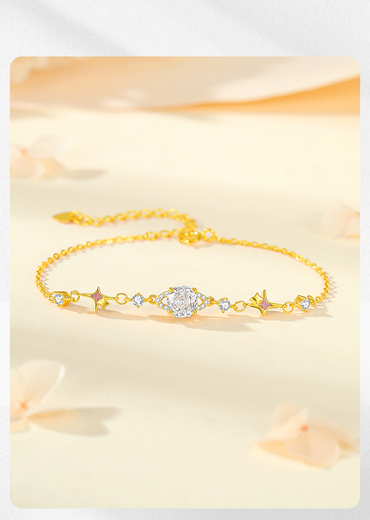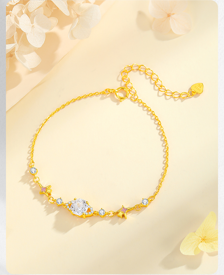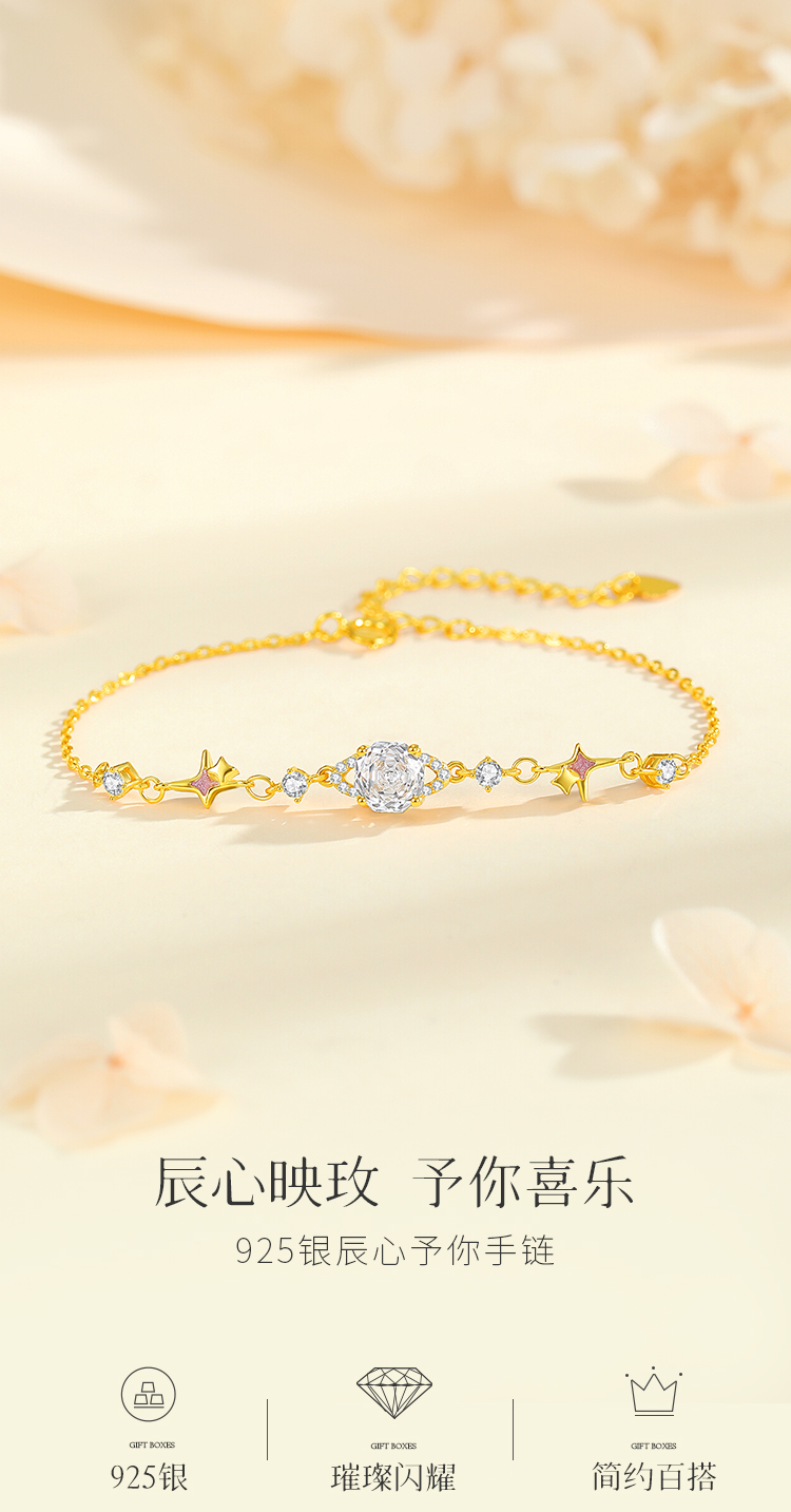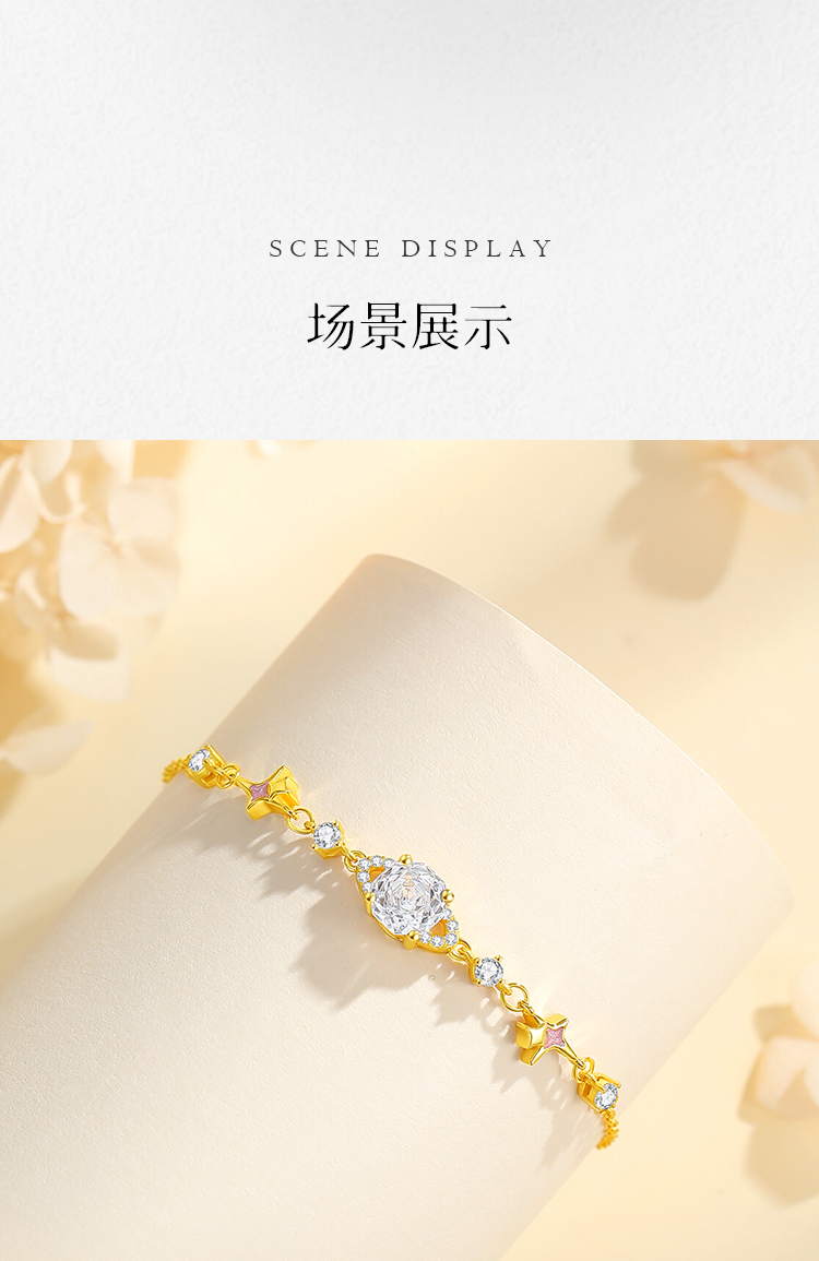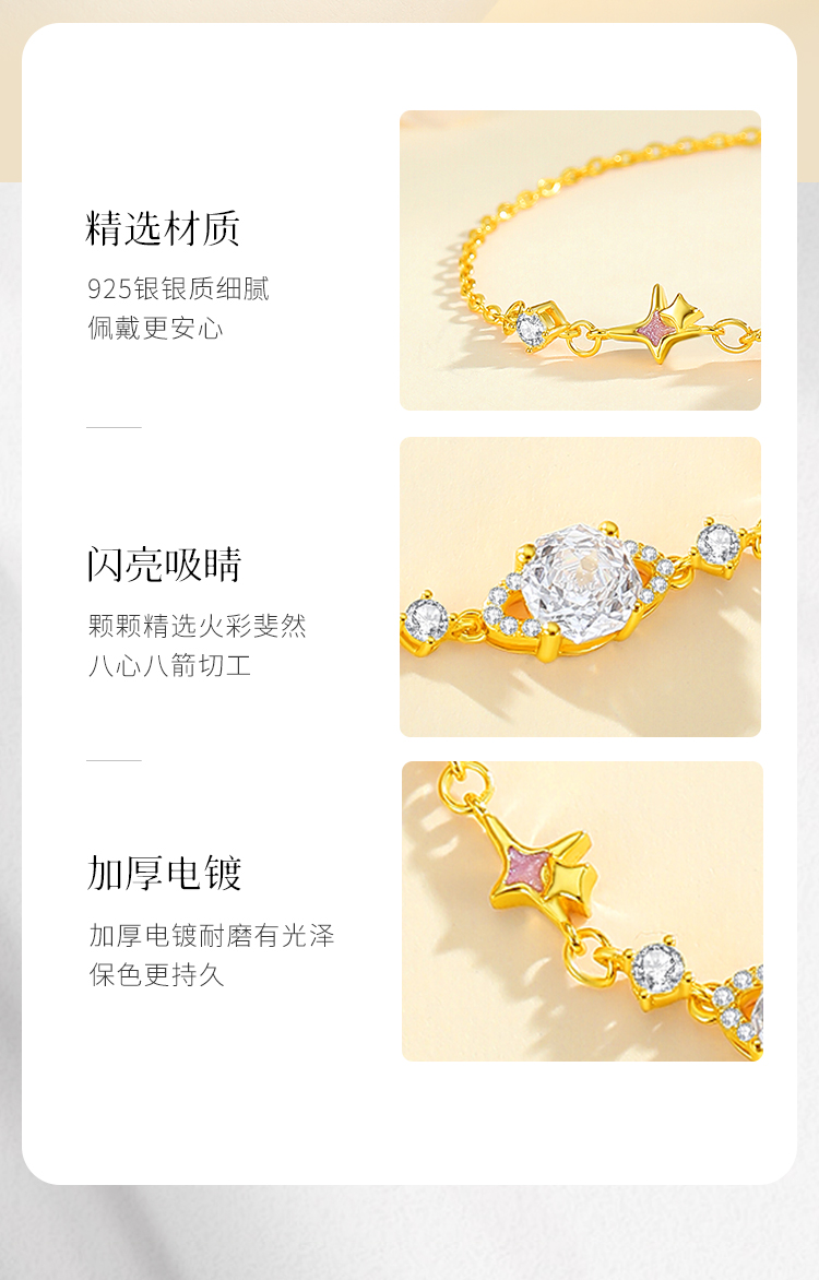 Winy 辰心予你 S925 银镀金色手链 合成立方氧化锆星芒设计 轻奢百搭日常通勤手饰