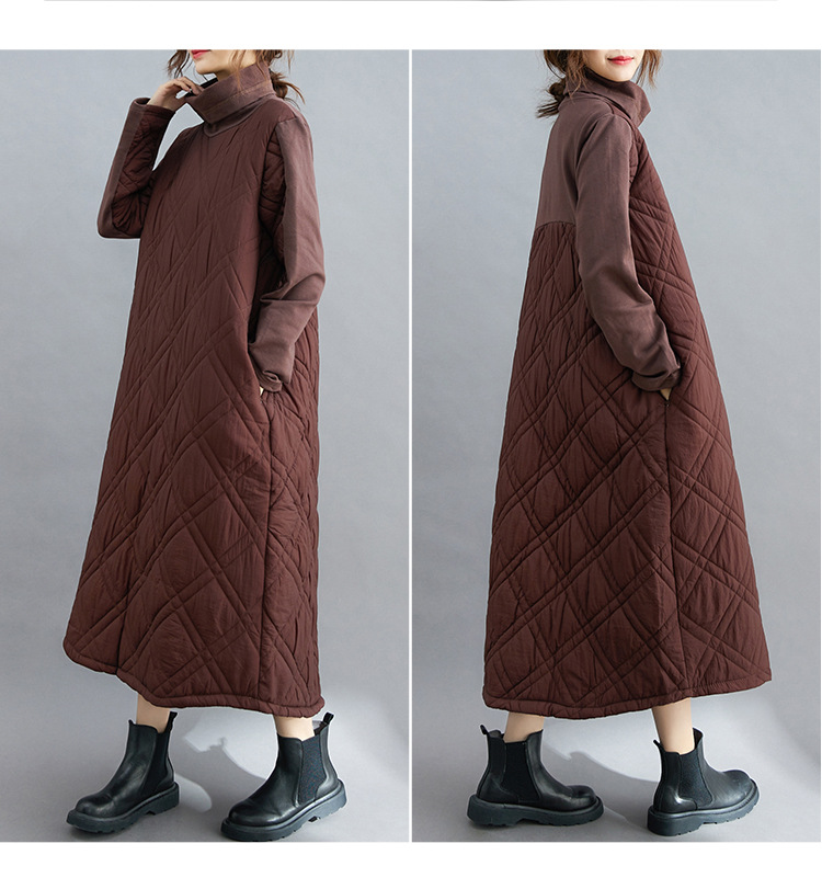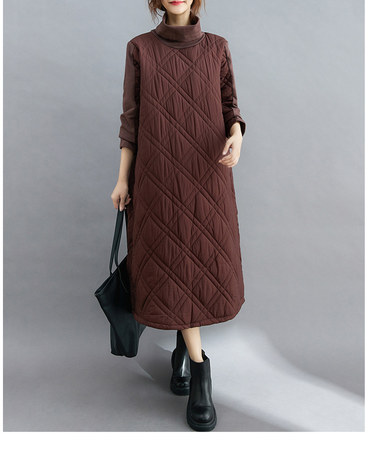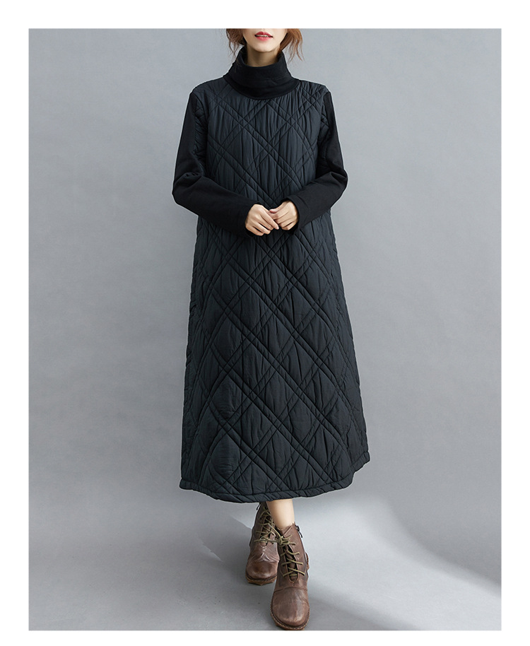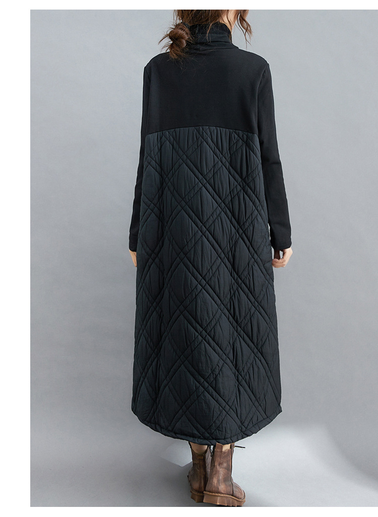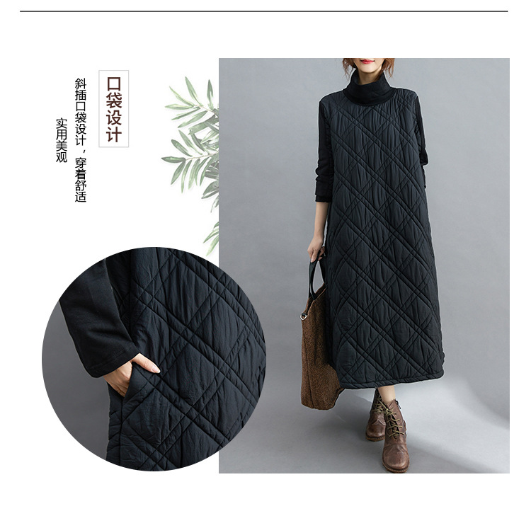雀说新款韩版大码女装夹棉加厚高领时尚拼接打底连衣裙AL1202