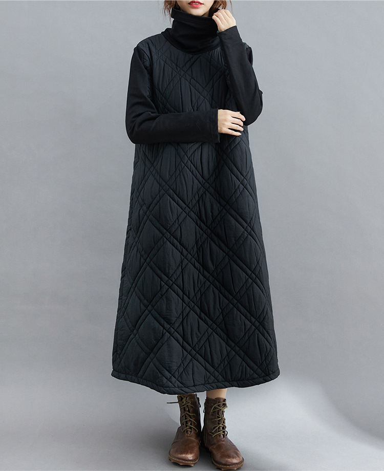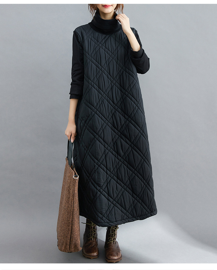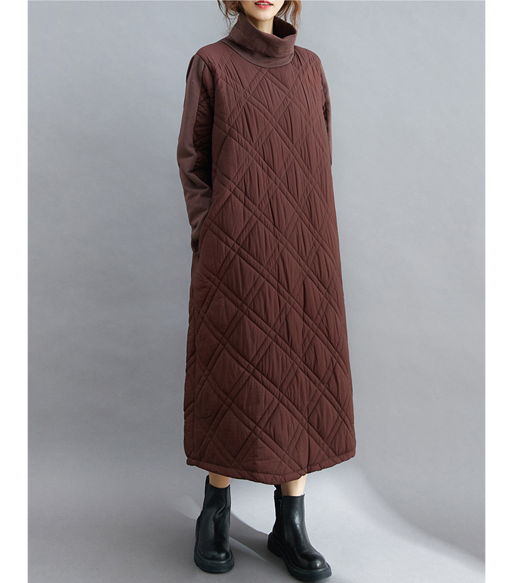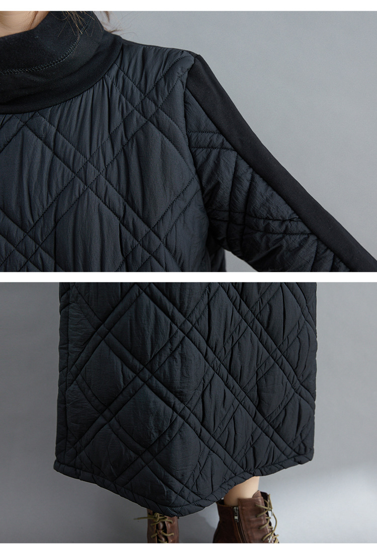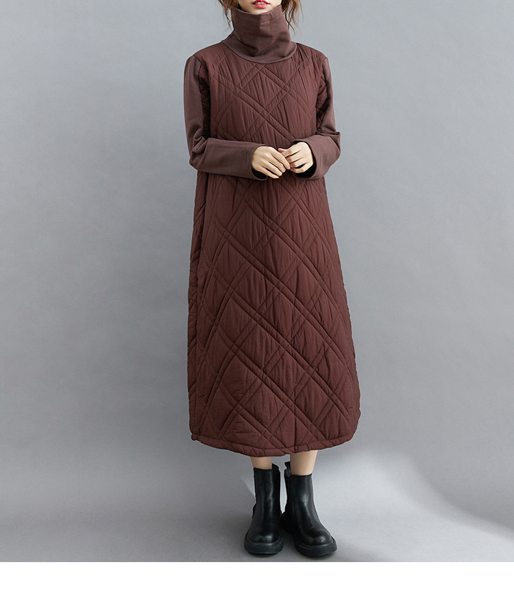 雀说新款韩版大码女装夹棉加厚高领时尚拼接打底连衣裙AL1202