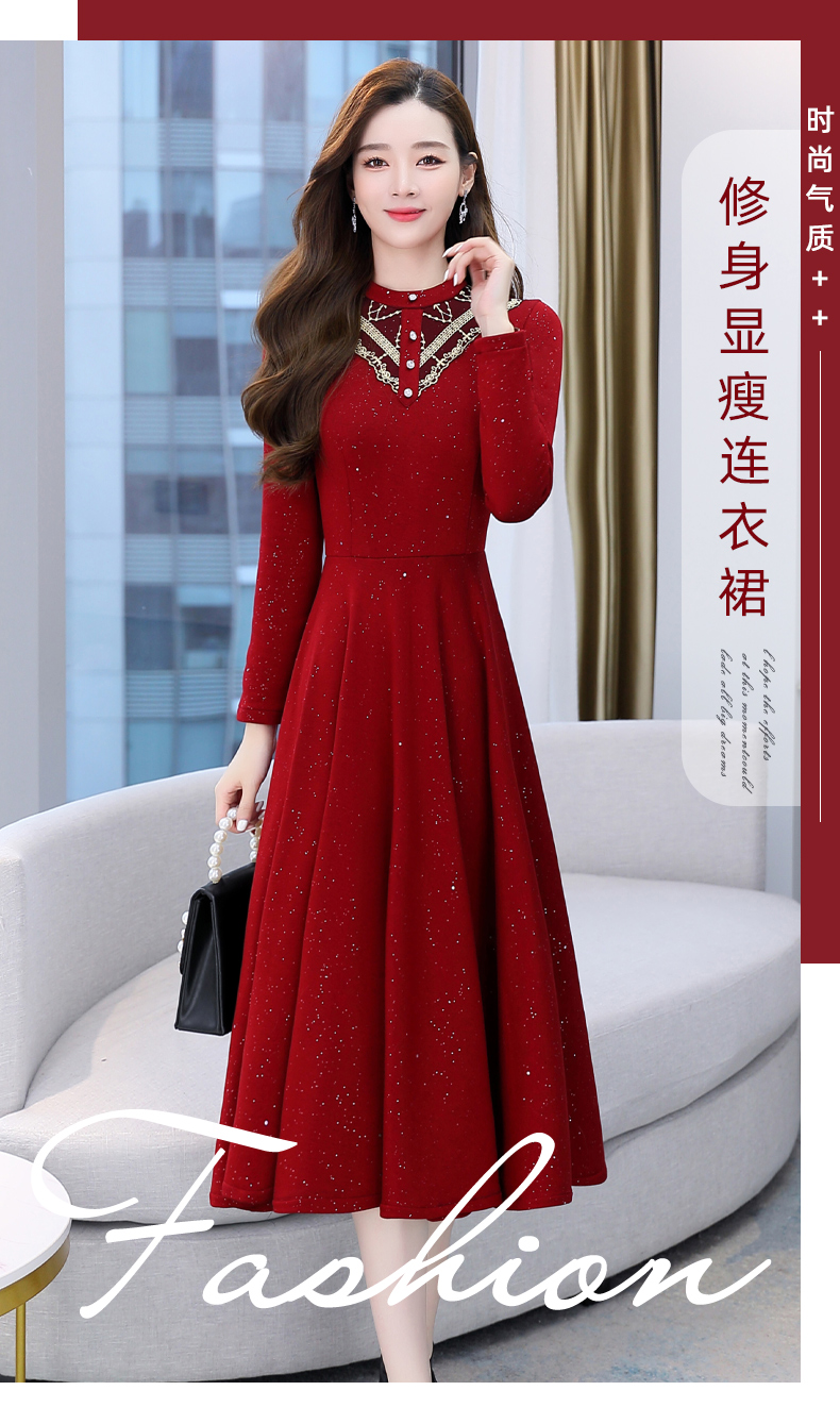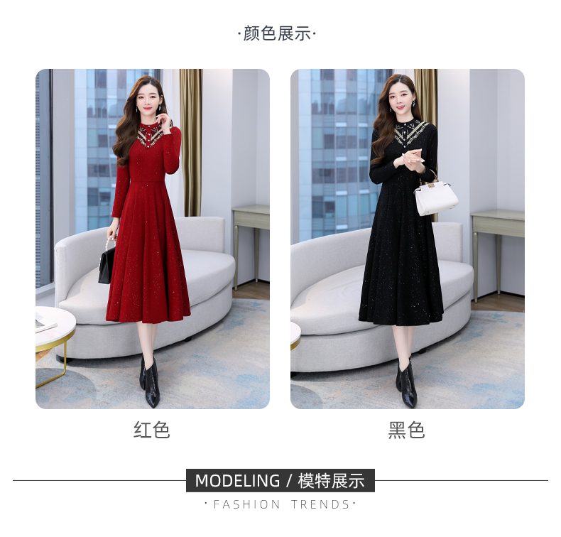 洋气打底配大衣,气质加绒加厚内搭连衣裙HR-HRYZ7686