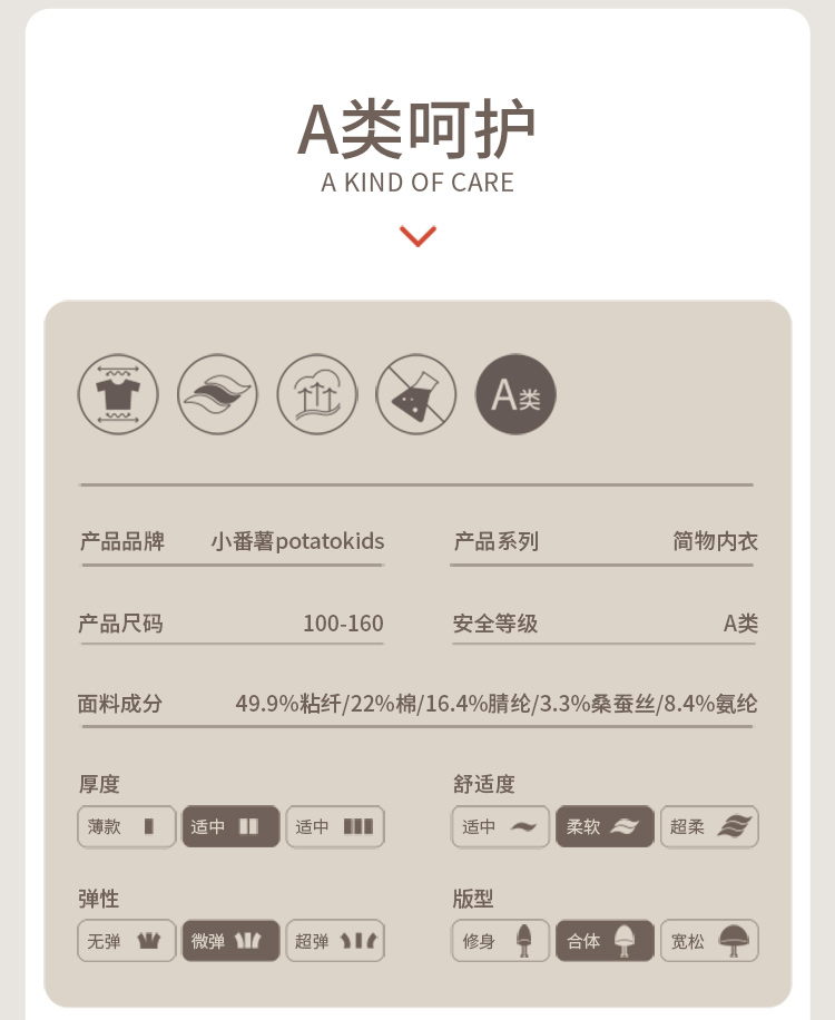 小番薯potatokids 简物内衣套装儿童秋冬款内搭打底保暖套装PA26150101