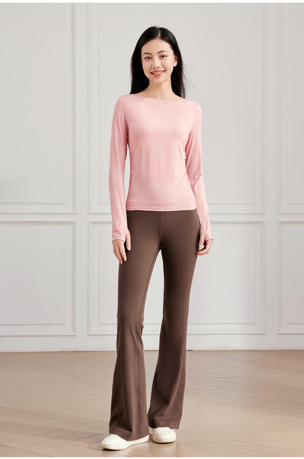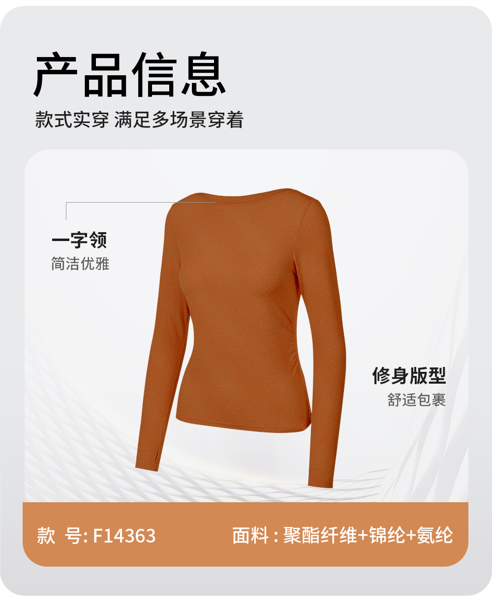 凡圣瑜伽 一字领抽褶瑜伽长袖F14363