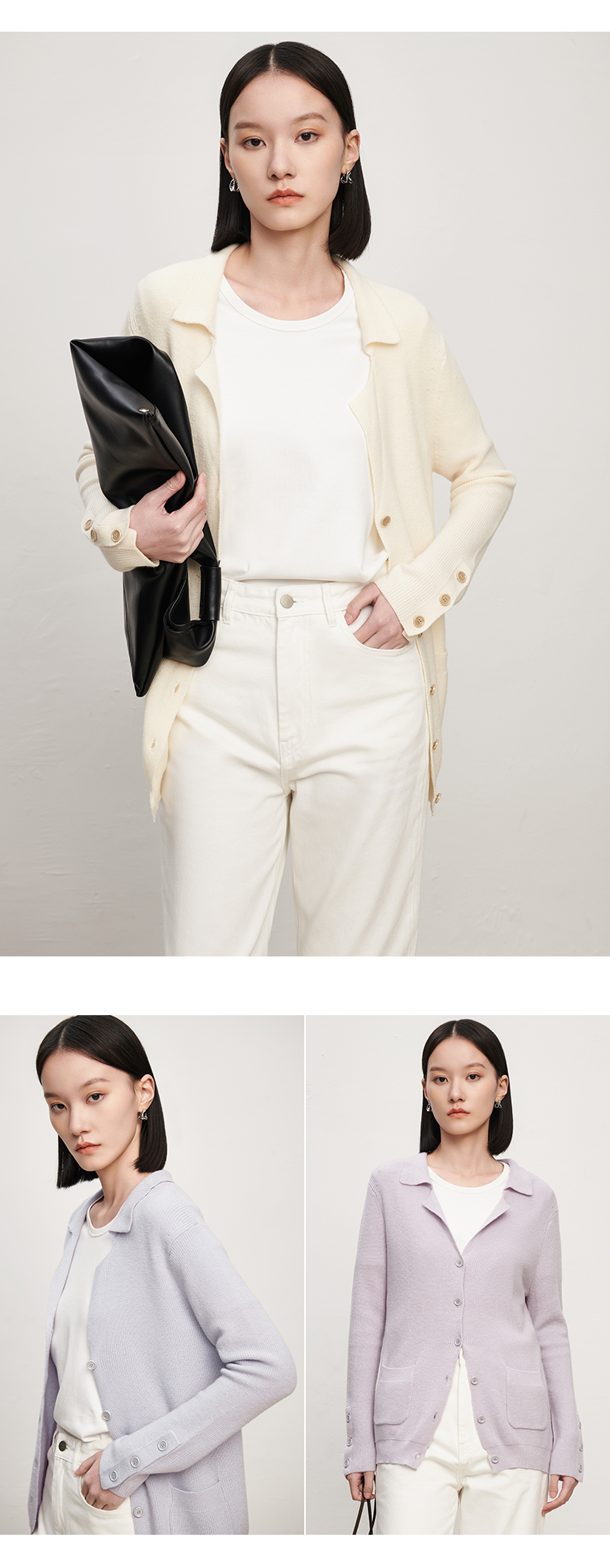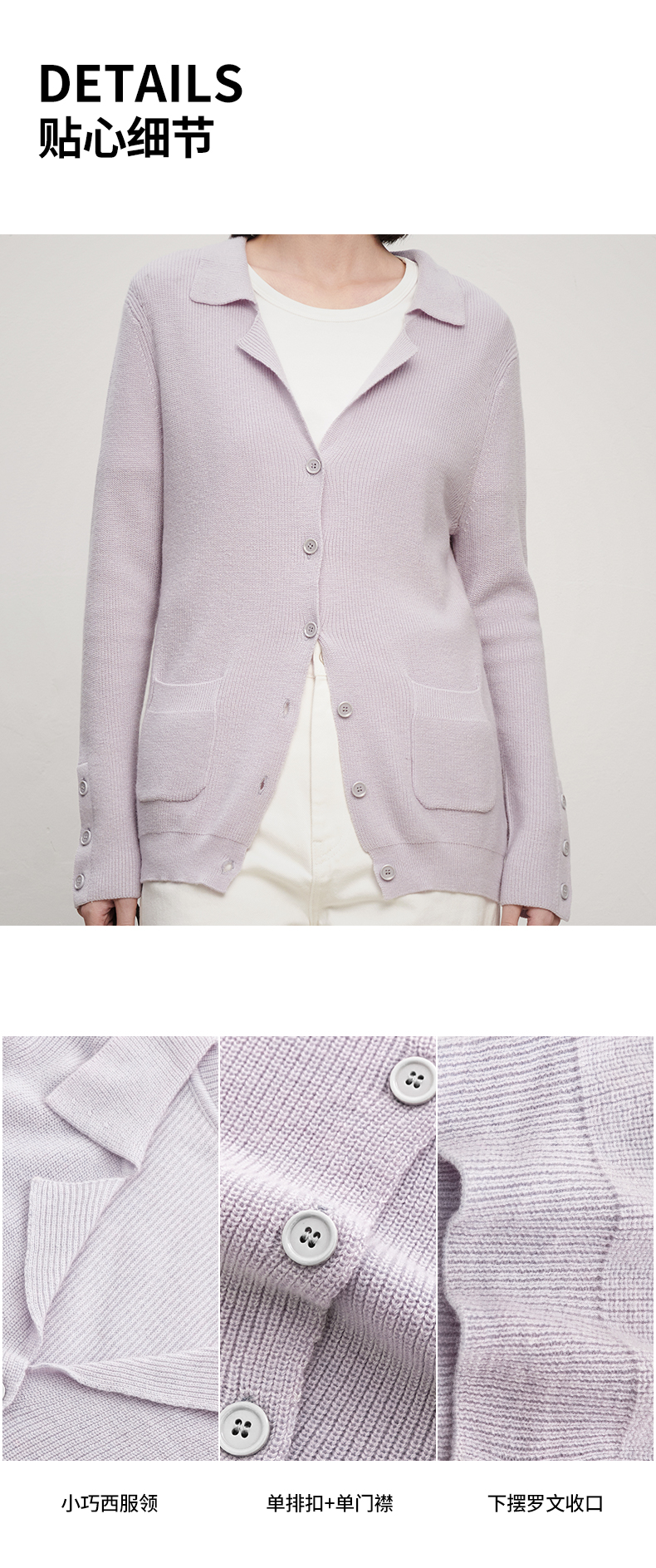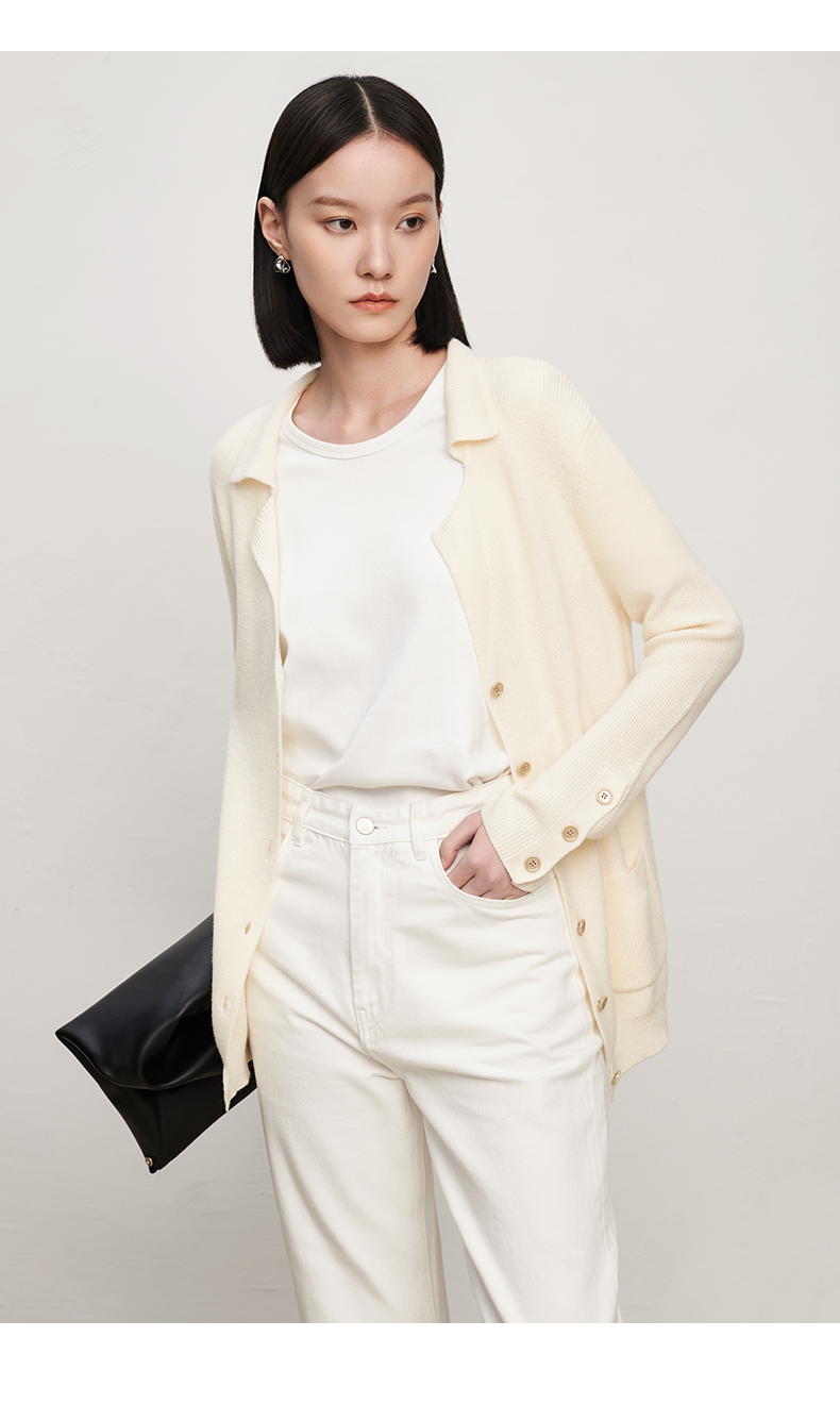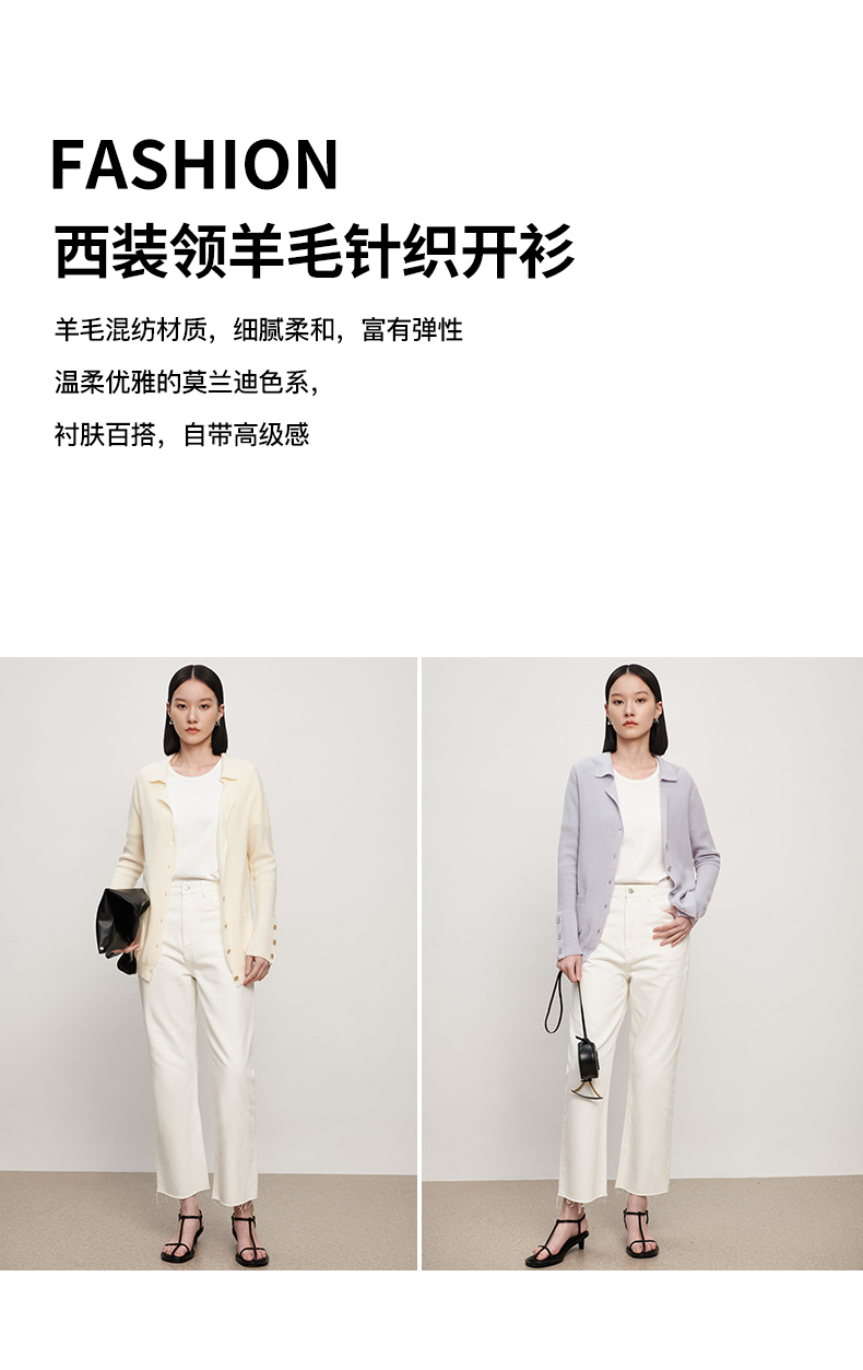 IN AND ON 针织衫开衫女春秋新款百搭显白百搭西装领针织上衣