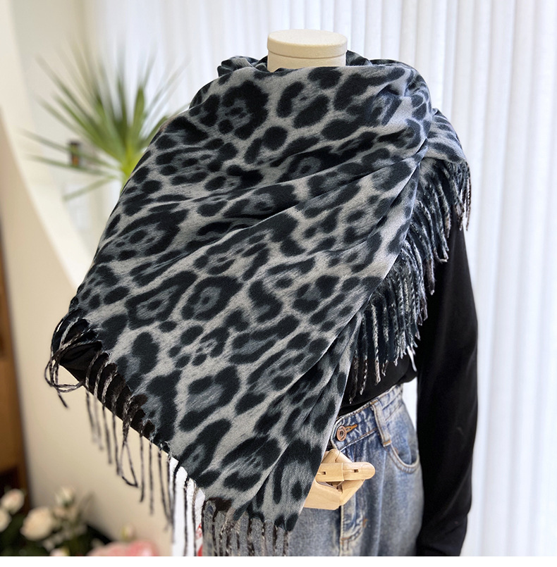 雀说 豹纹围巾女秋冬经典加厚仿羊绒印花流苏披肩YHP05 商品图4