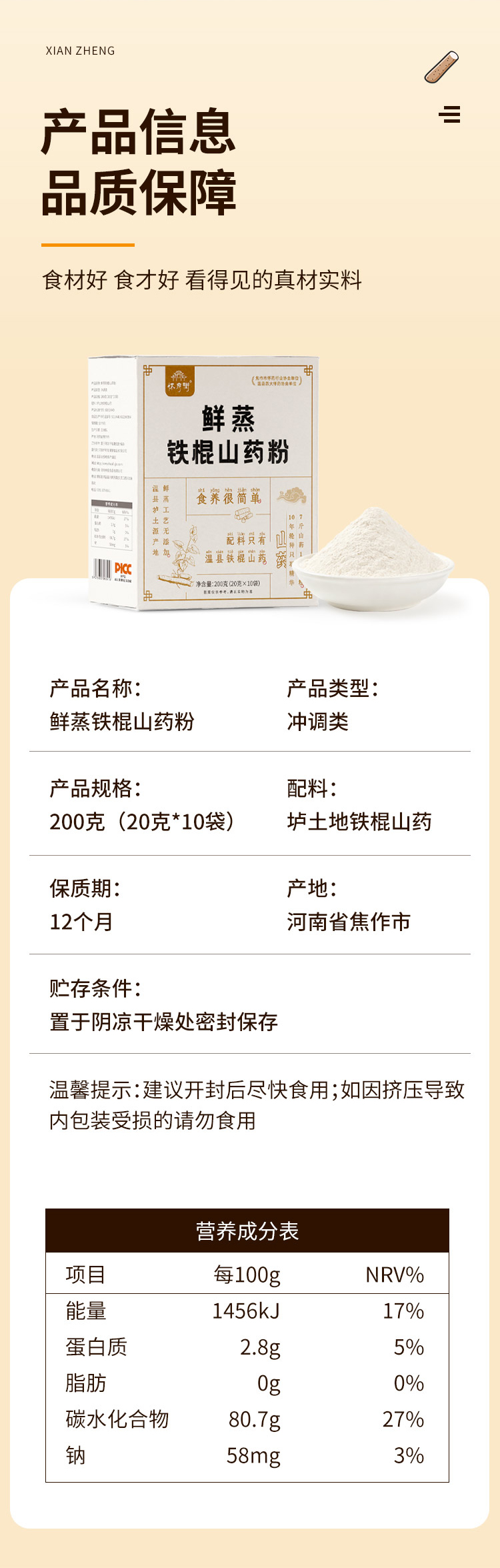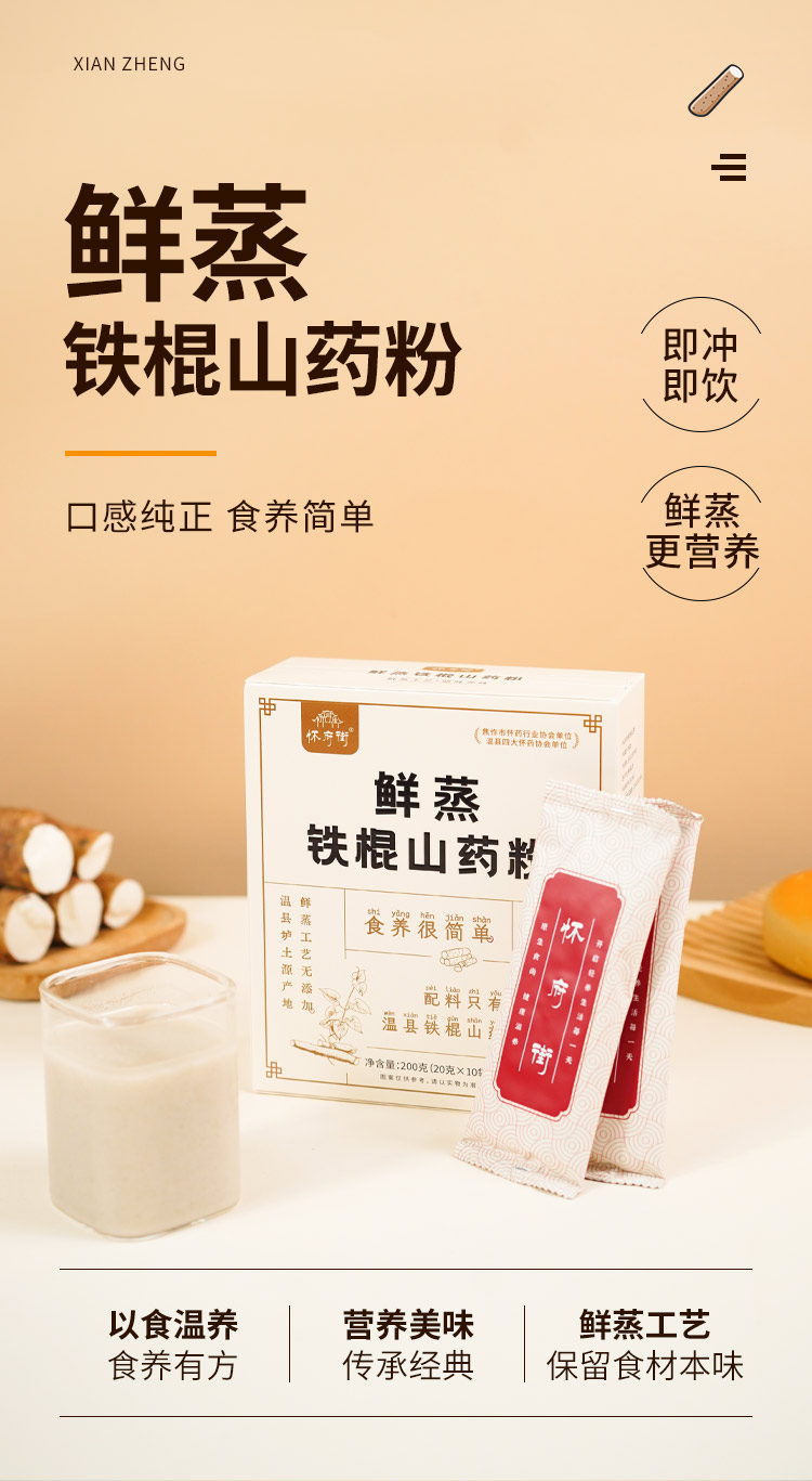 怀府街|鲜蒸铁棍山药粉 鲜蒸工艺 山药粉更细腻 好喝又养脾胃200g/盒