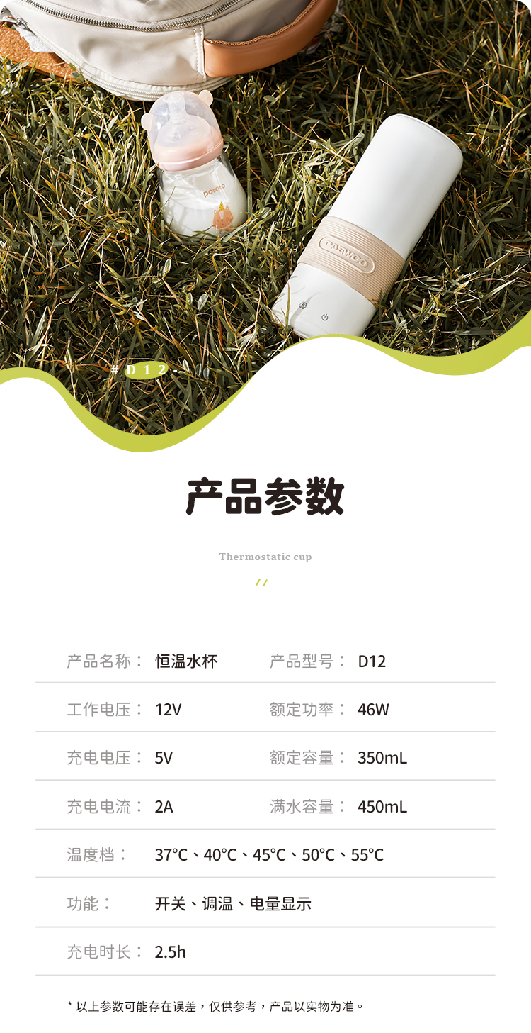 大宇恒温水壶便携烧水杯家用婴儿专用泡奶机D12