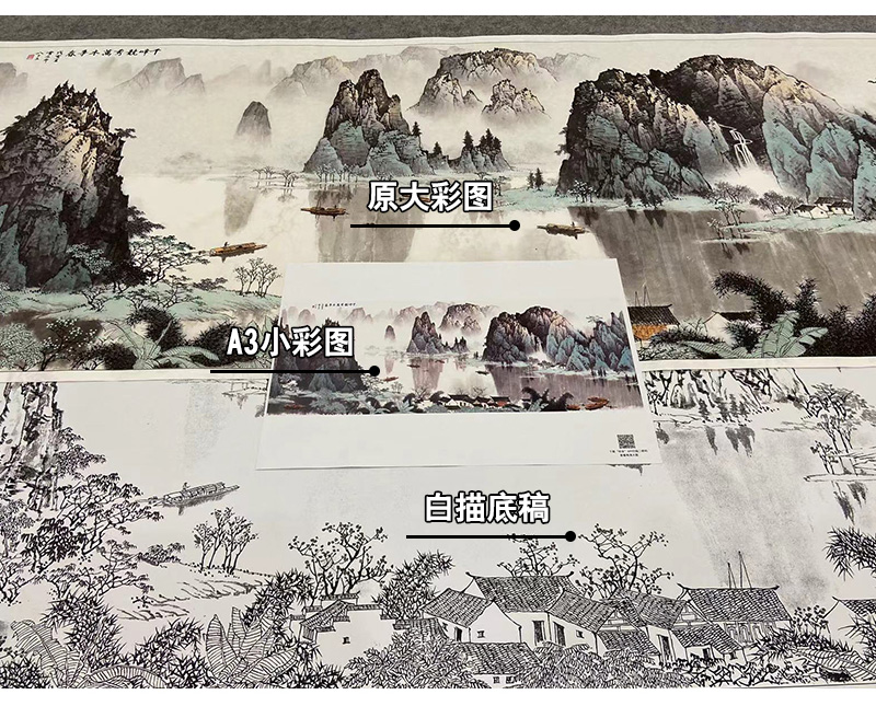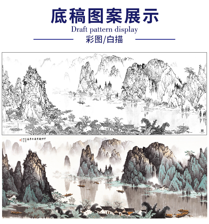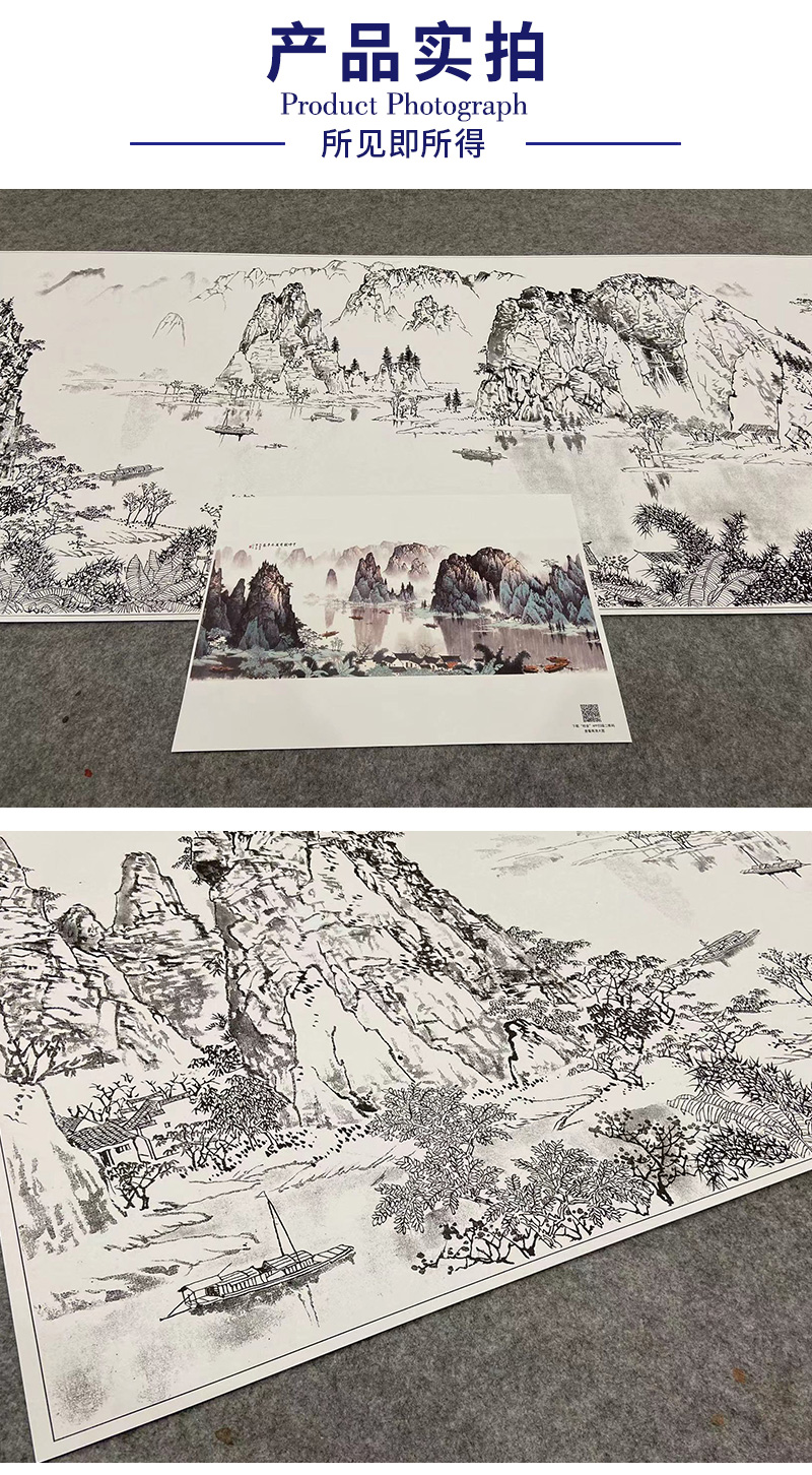 【大彩图】白雪石横幅工笔画白描底稿《千峰竞秀纸》临摹勾线高清打印稿BX02
