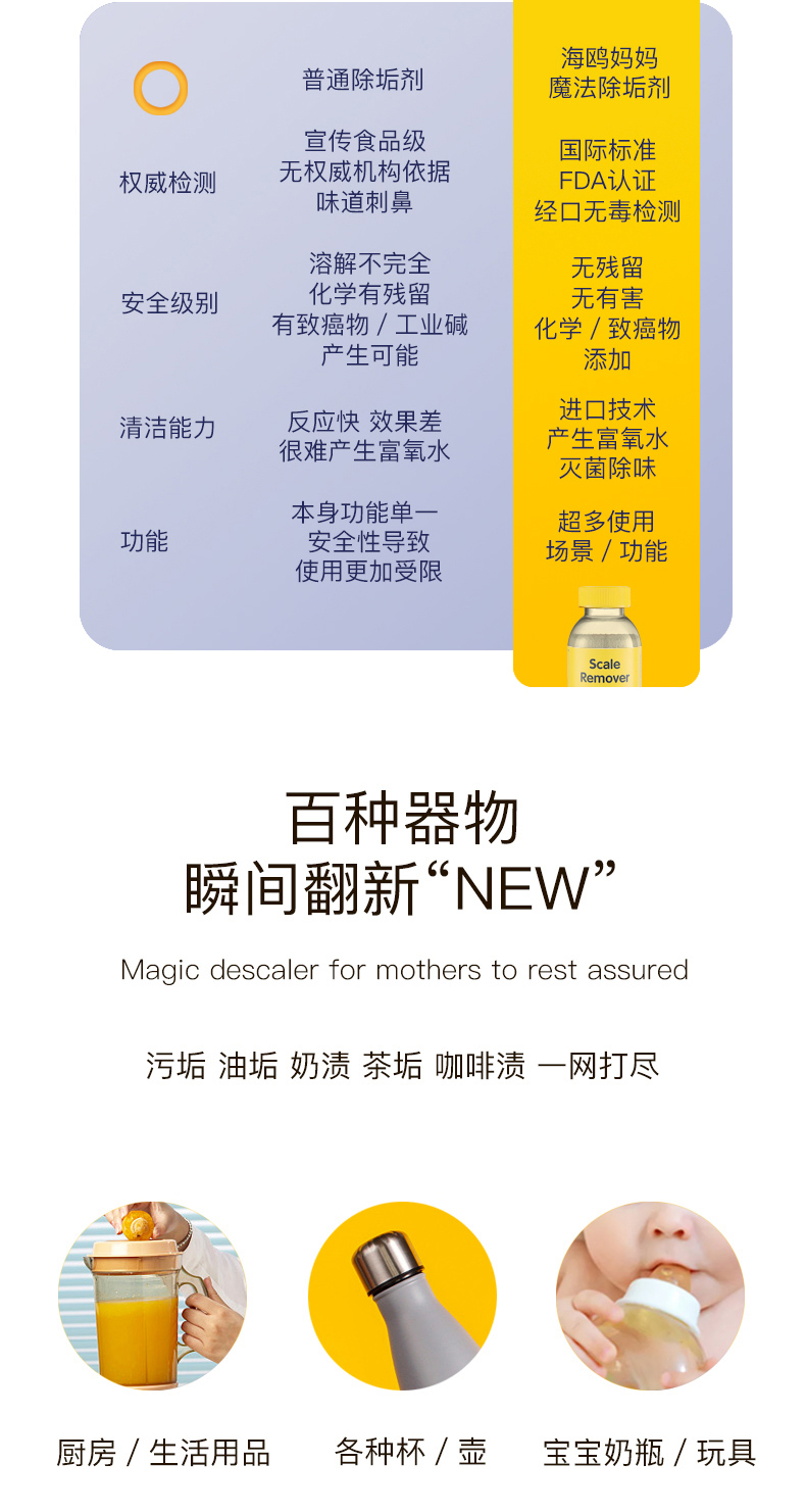 【一物多用】SeaMew海鸥妈妈多功能免刷洗食品接触级自动除垢剂循环利用溶解完的产品溶液还可以用来做家居日常清洁
