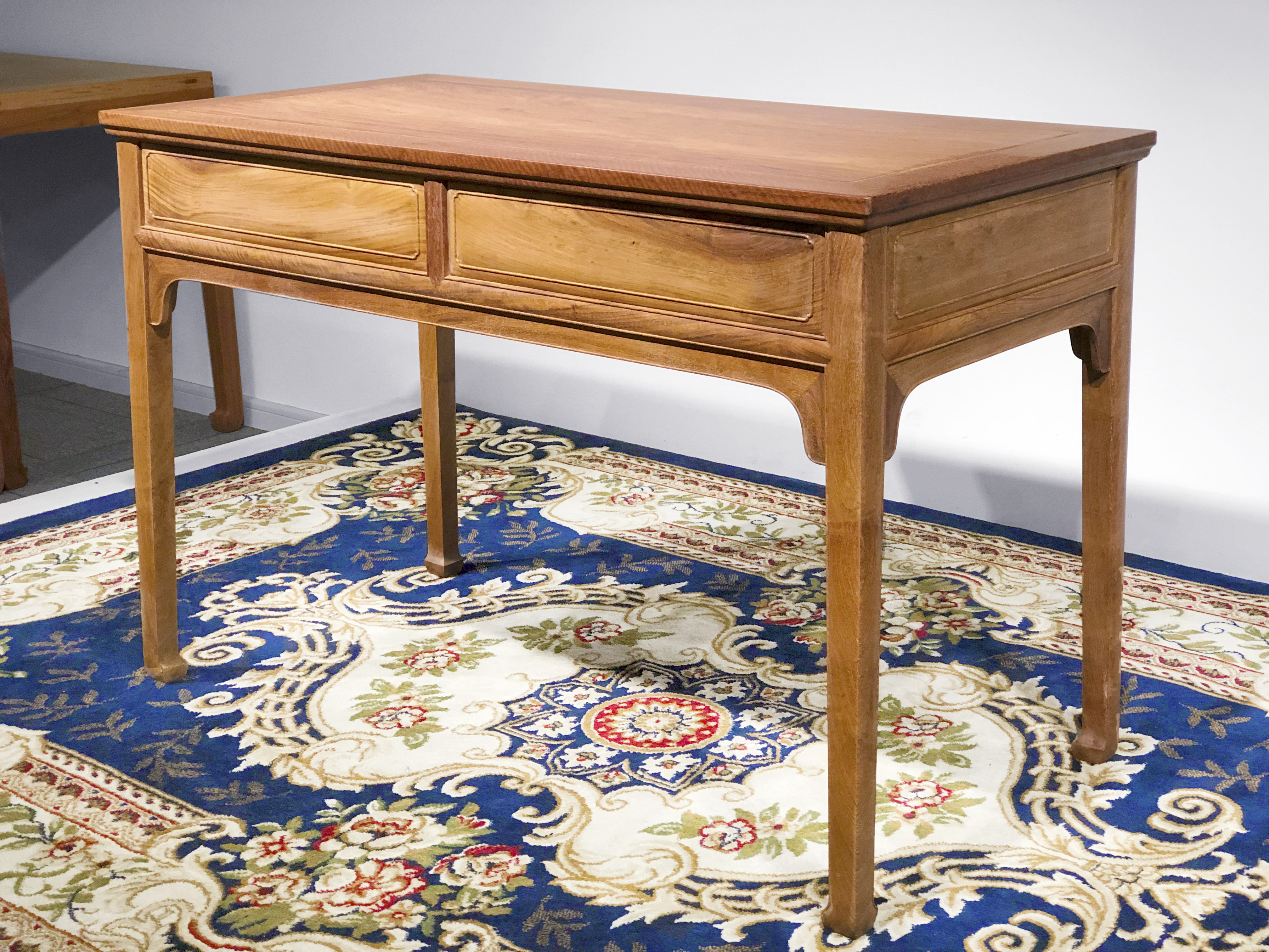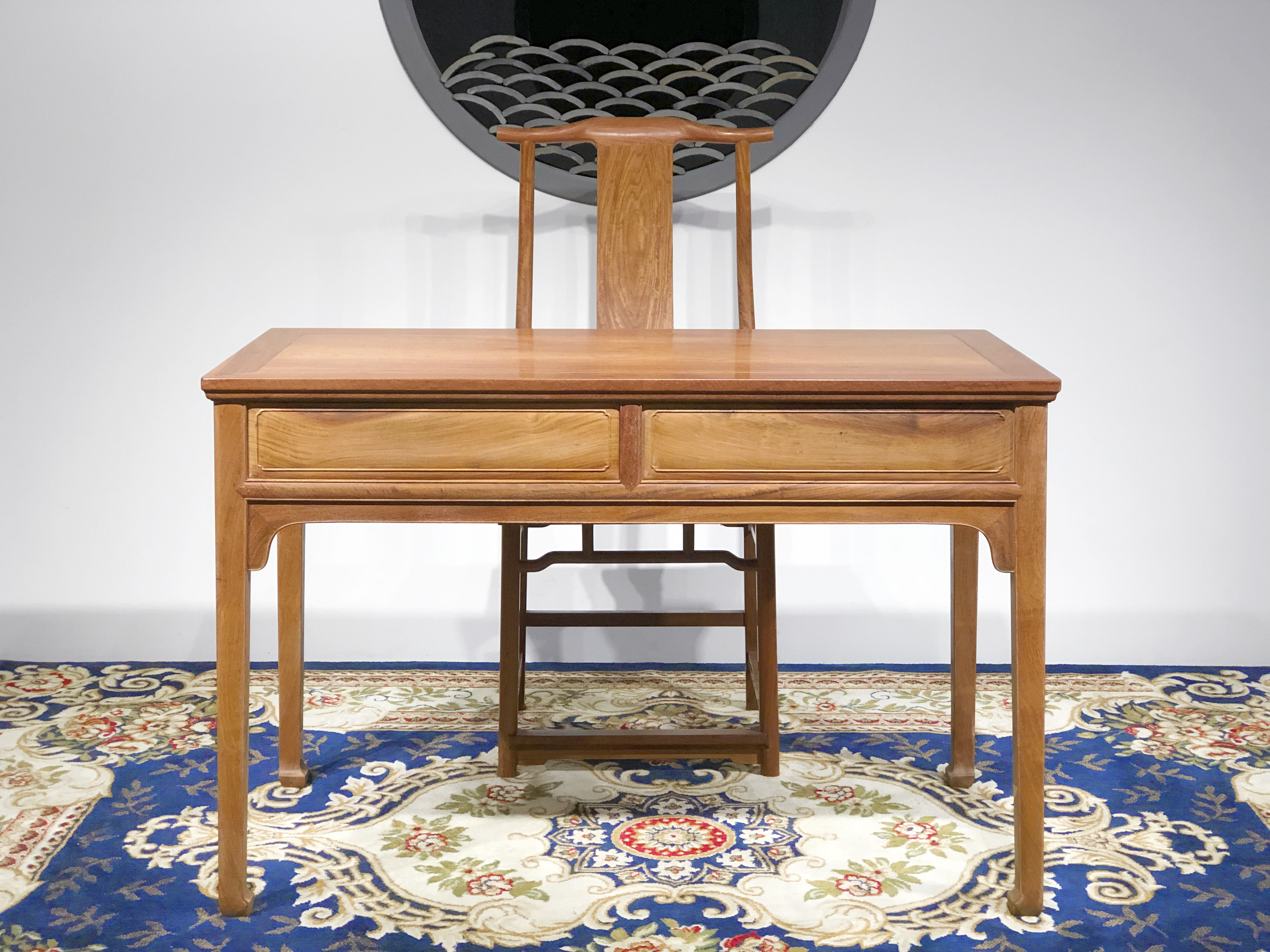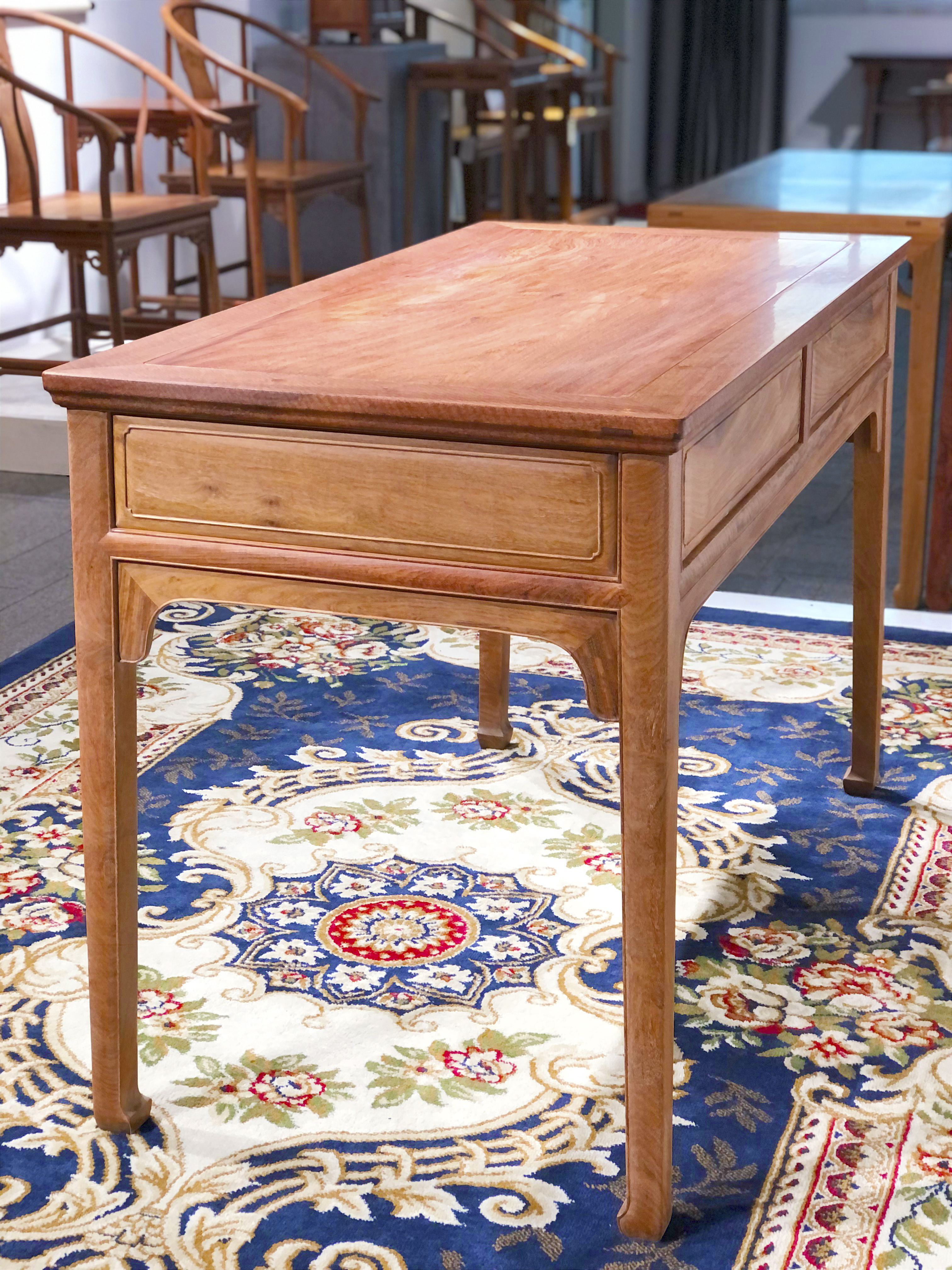 书桌无束腰,宽度较常例增加10公分有余至60公分,实用性颇高。