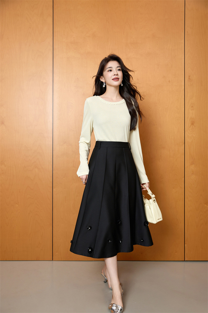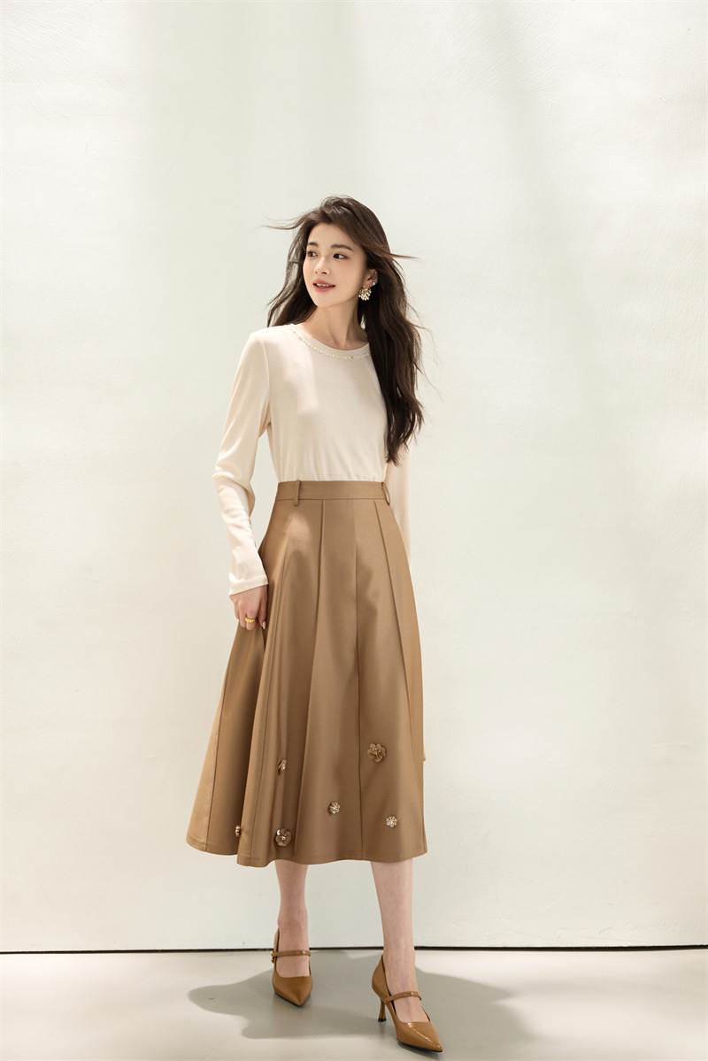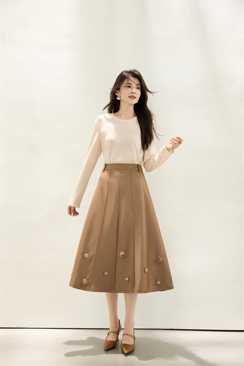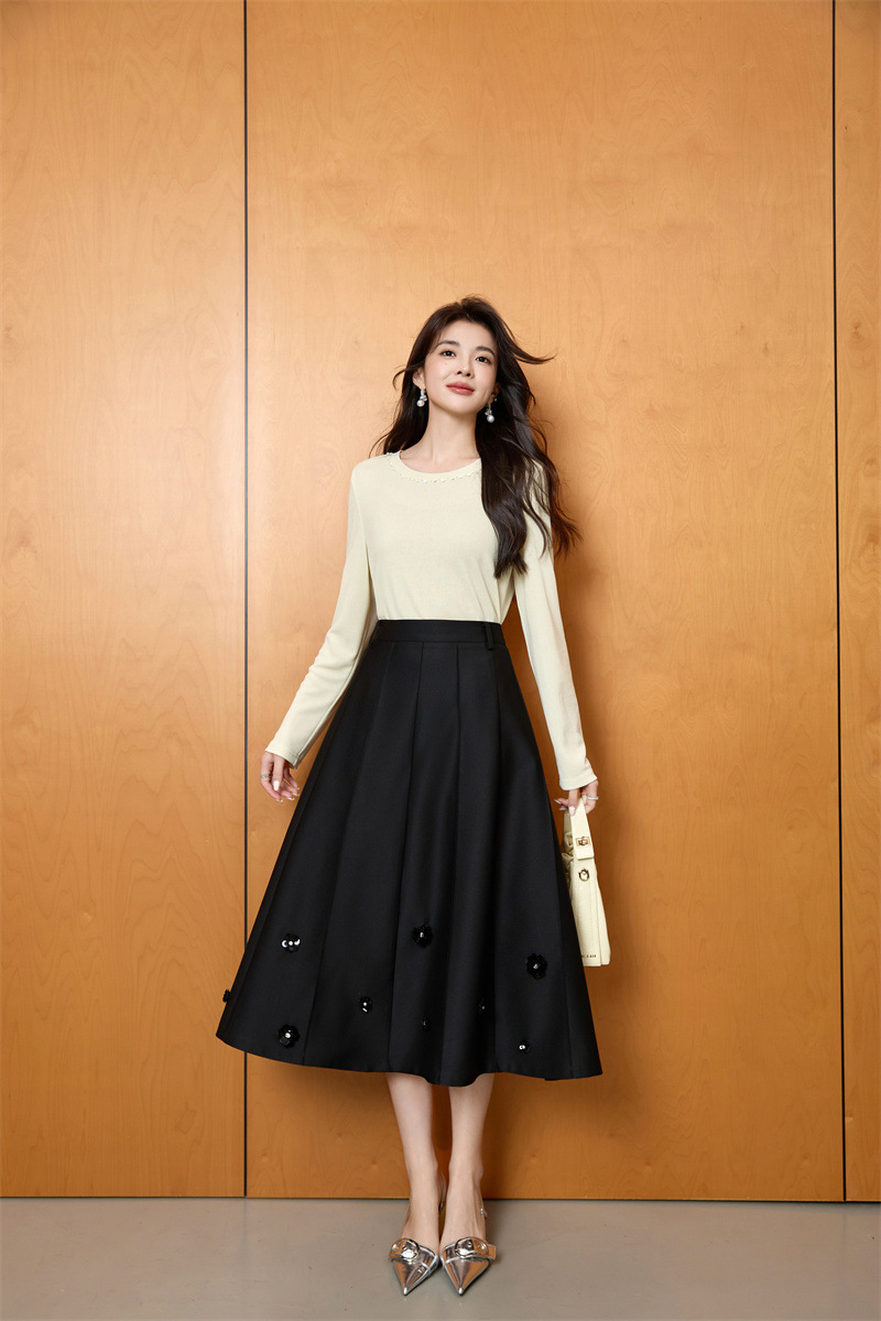 「自」全新升级【铂金会员192/天猫259/差价67】(11722)洛诗琳新款复古气质高腰半身裙2025秋季重工钉珠直筒A字裙