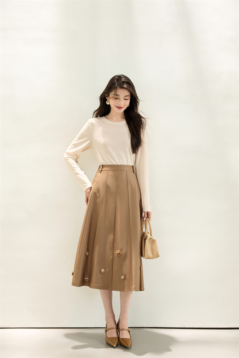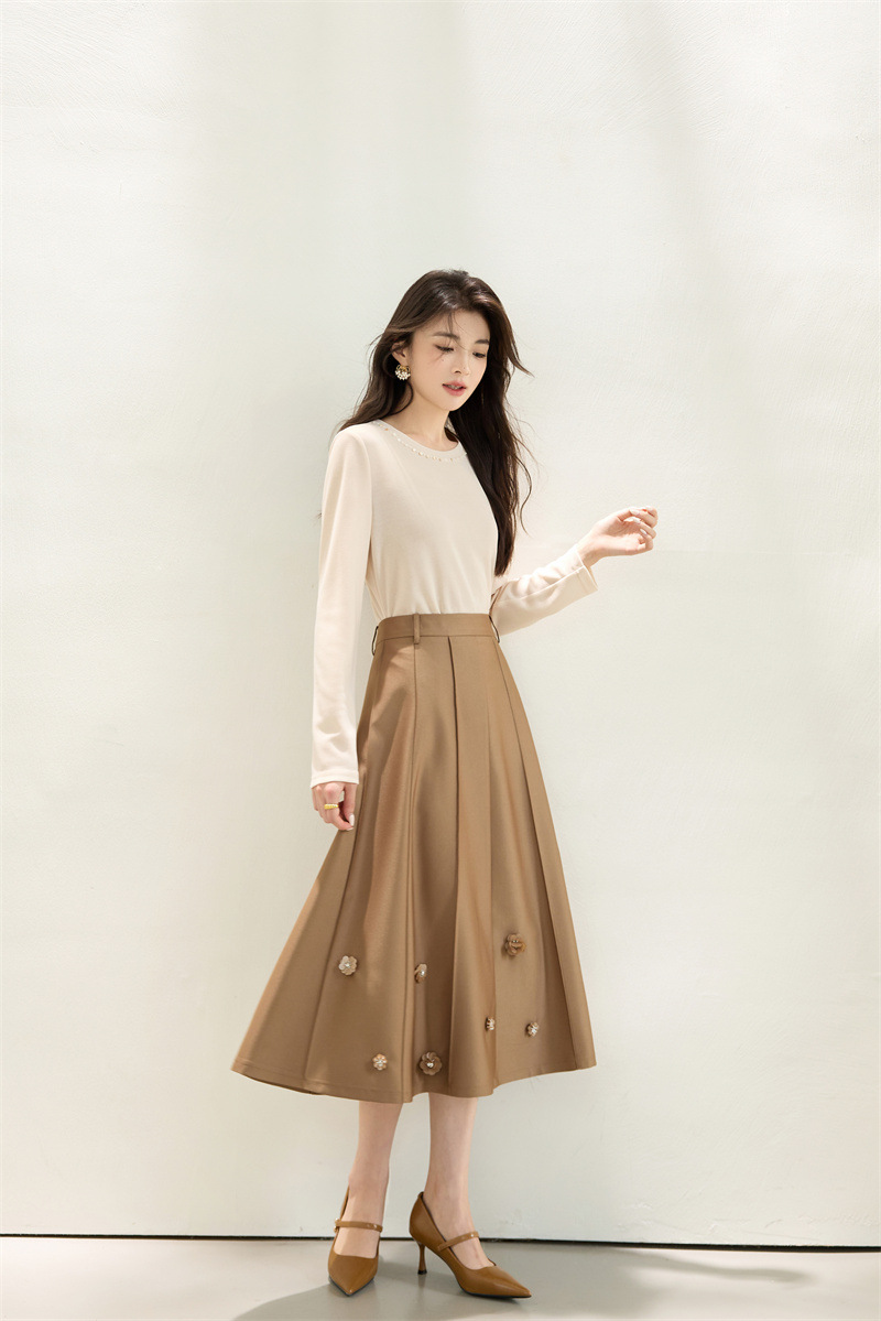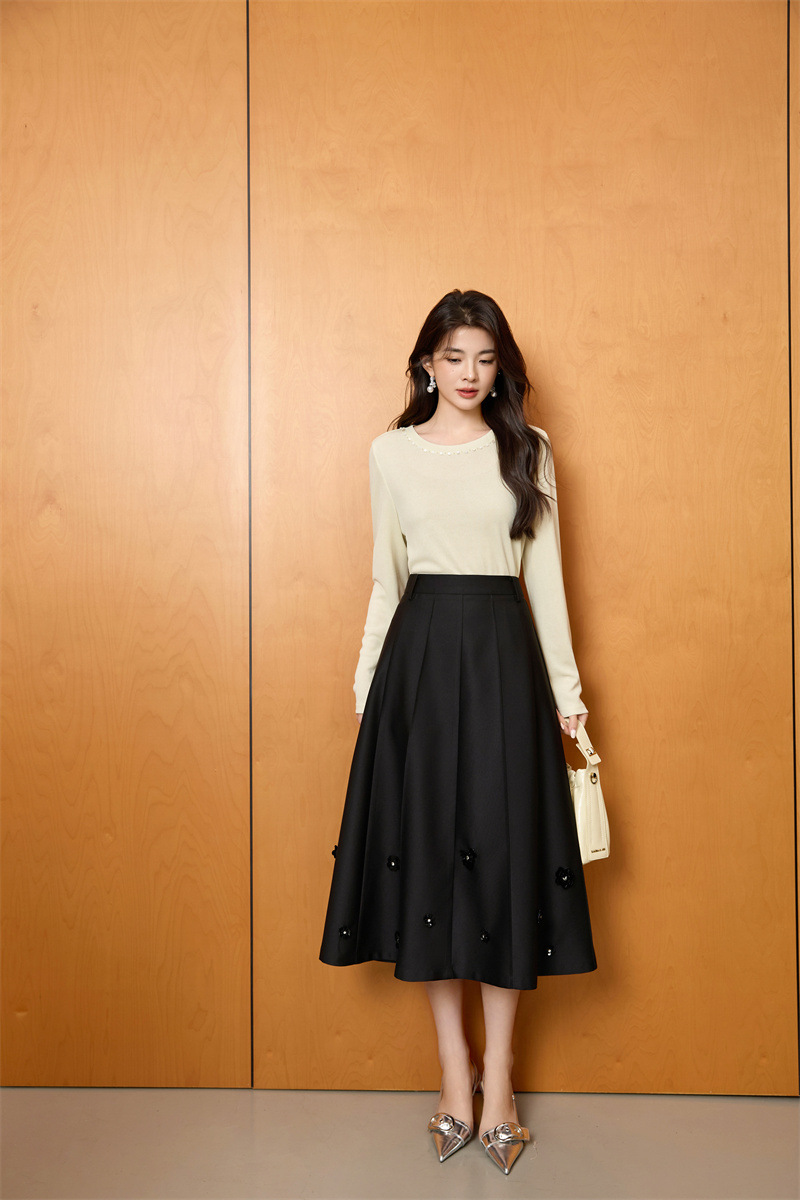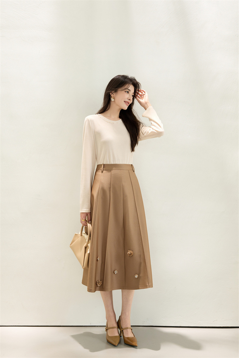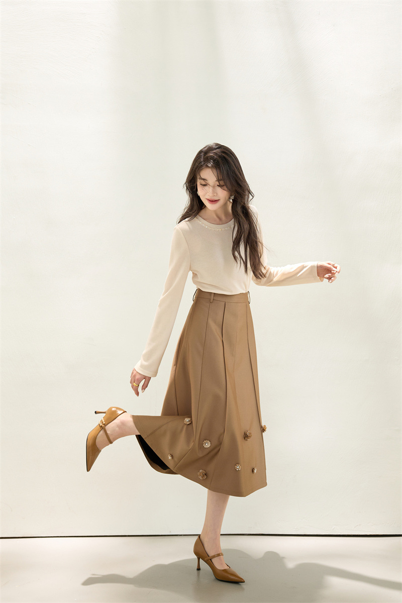 「自」全新升级【铂金会员192/天猫259/差价67】(11722)洛诗琳新款复古气质高腰半身裙2025秋季重工钉珠直筒A字裙