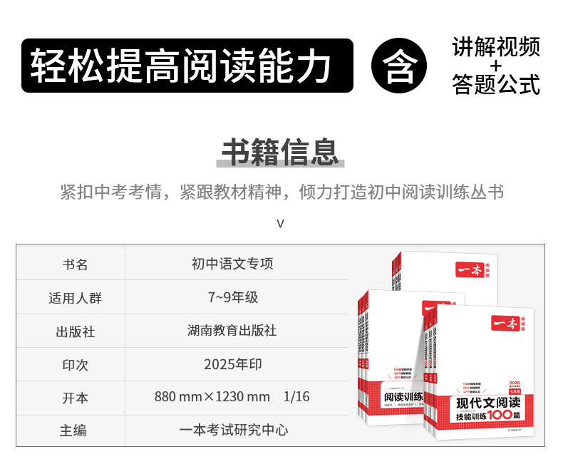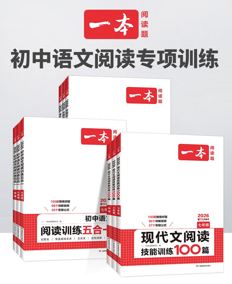 2026一本阅读题 初中语文现代文文言文古诗阅读训练五合一英语听力完形填空七八中考年级可选