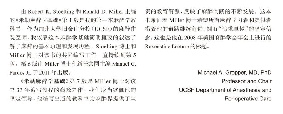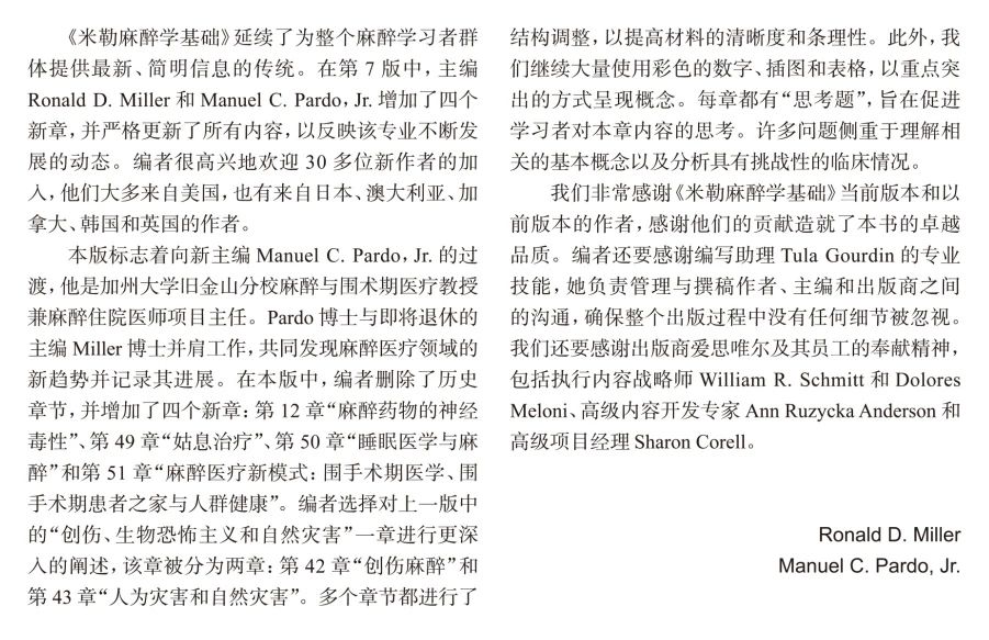 · 麻醉学科的王牌著作米勒麻醉学的基础版“小米勒”(Baby Miller),由米勒教授及全球顶尖专家团队编写