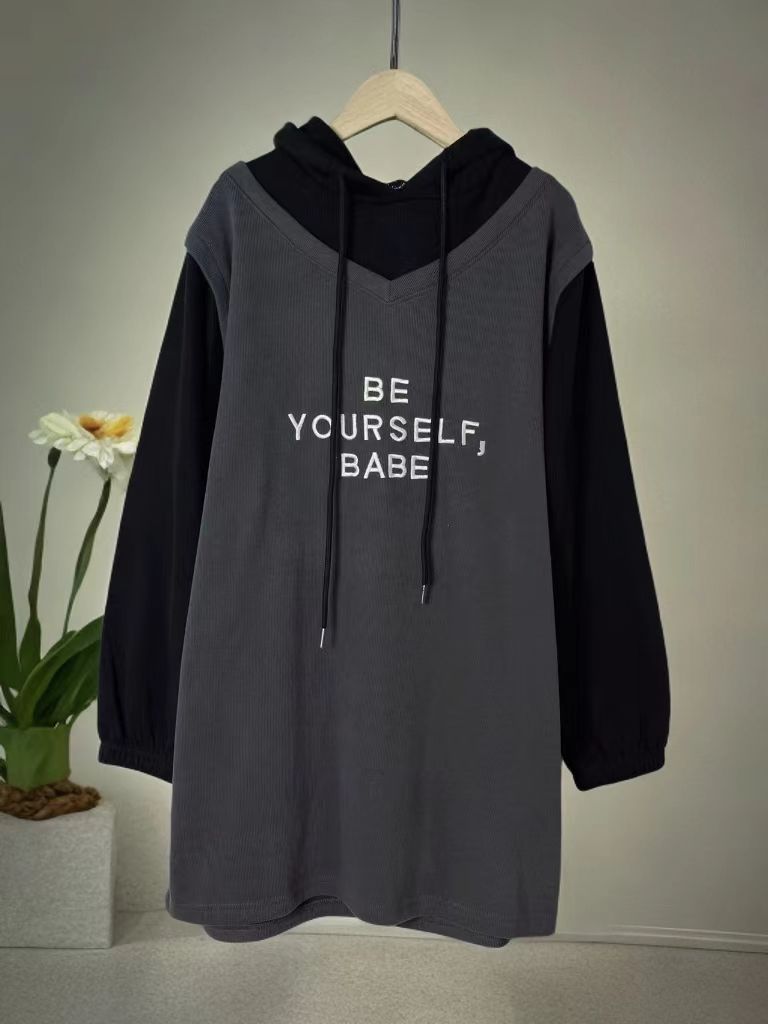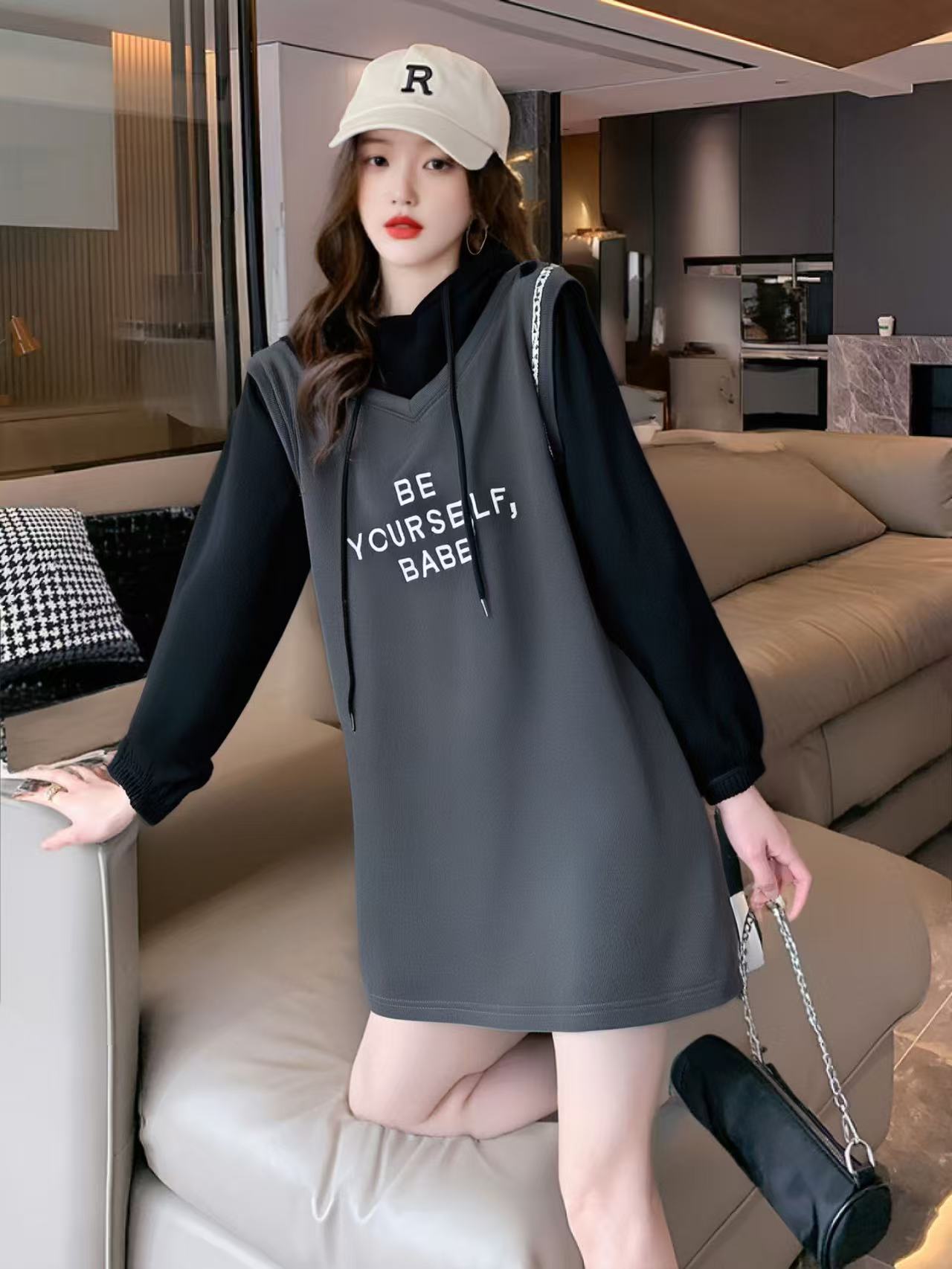 【诗铭洛可】(加绒)W512刺绣字母卫衣裙秋冬厚款B19-3
