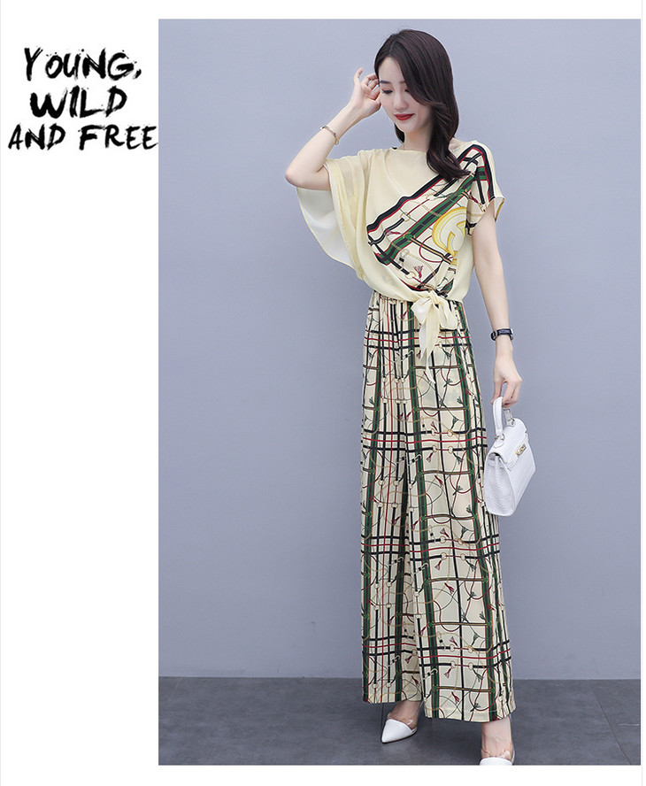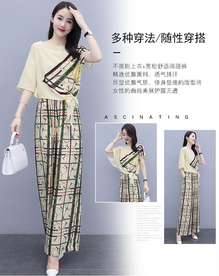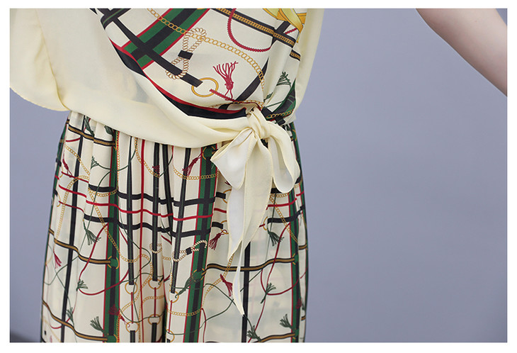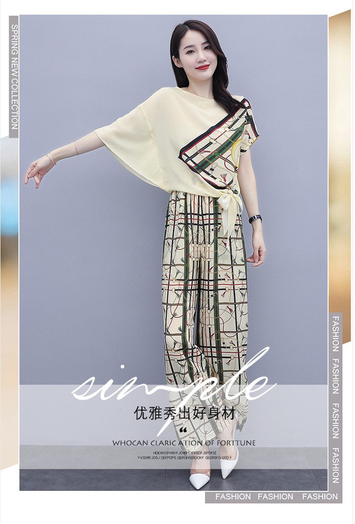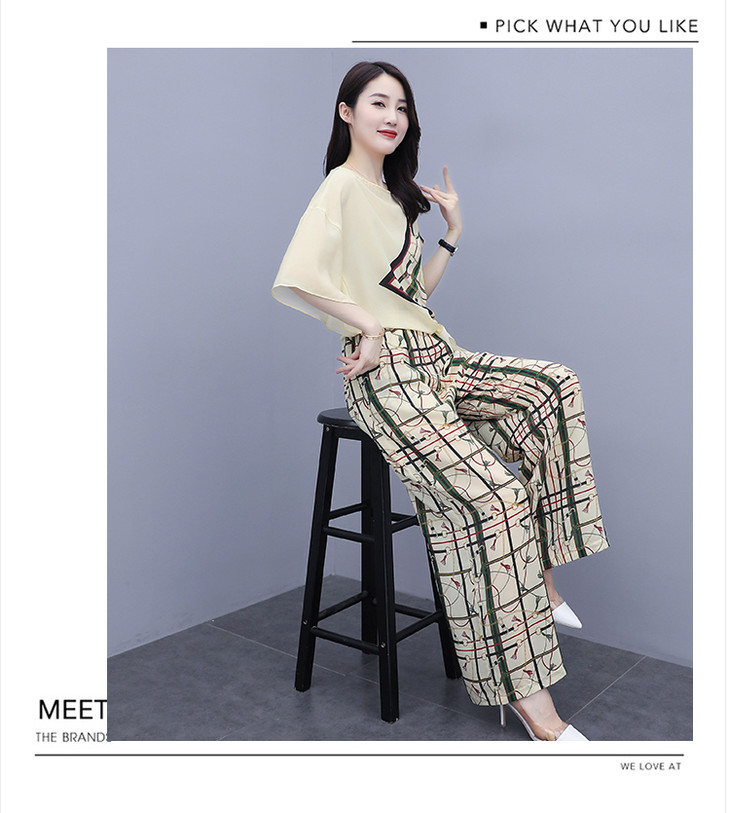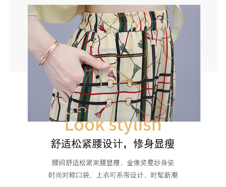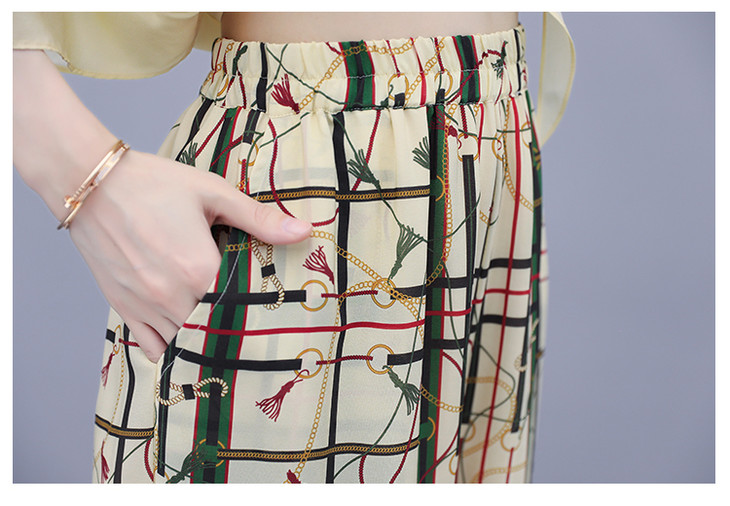 QC-ZWYR1173新款时尚碎花雪纺衫阔腿裤套装