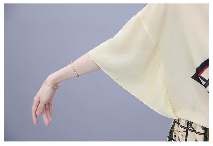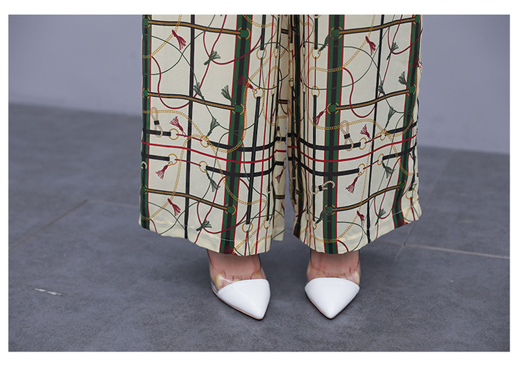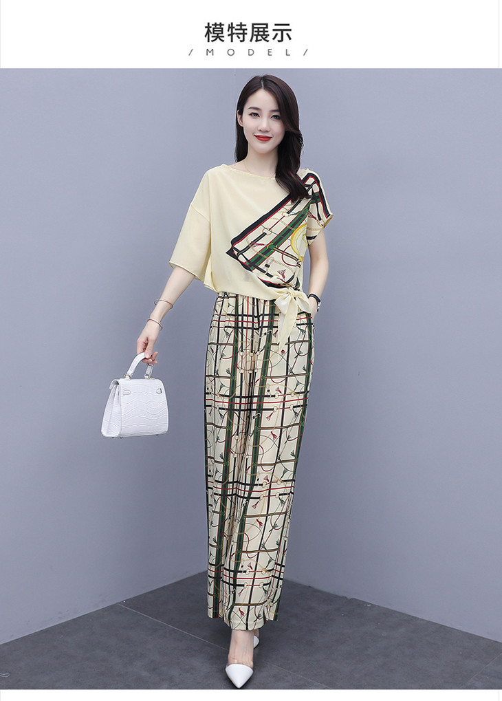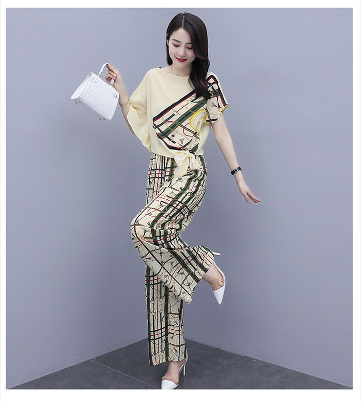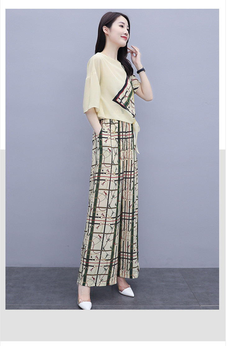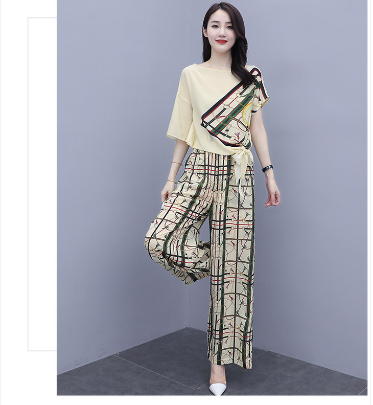 QC-ZWYR1173新款时尚碎花雪纺衫阔腿裤套装